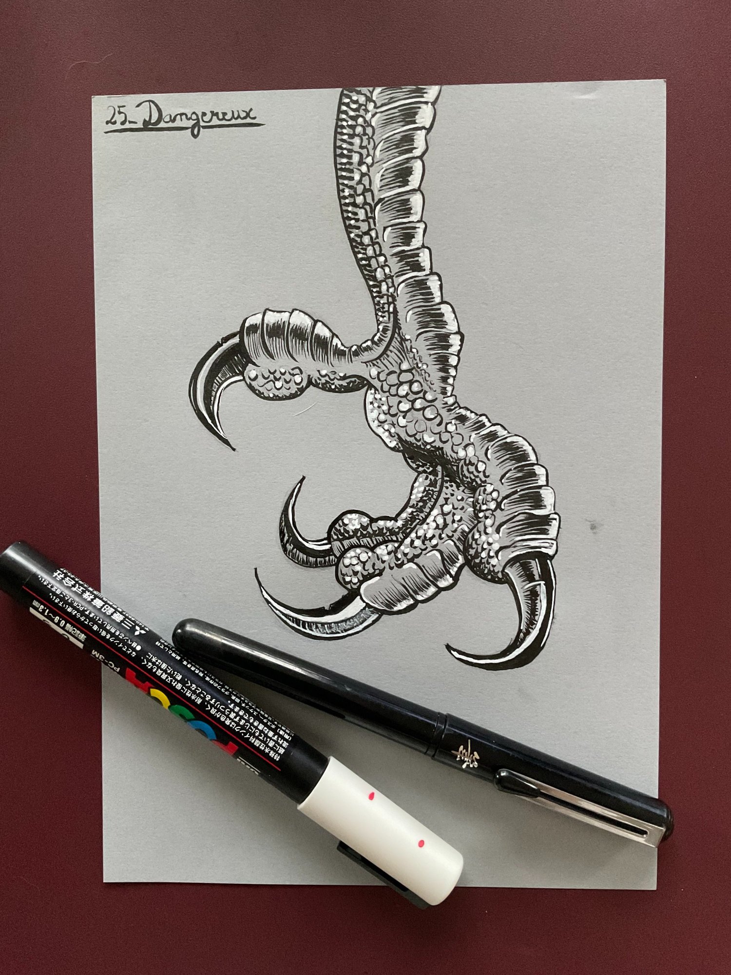 Bonsooooir ! Voici mon interprétation du thème. Je me suis gardé un peu de place en bas de la page pour rajouter une petite souris en-dessous cette dangereuse serre, mais j'avais pas le temps/courage de dessiner une compo entière, et je n'arrivais surtout pas à arrêter mon choix sur ce que je voulais faire exactement. Bref ! Je suis enfin pas trop tard, je vais pouvoir commenter tout le monde tout à l'heure ! ☺️1 point