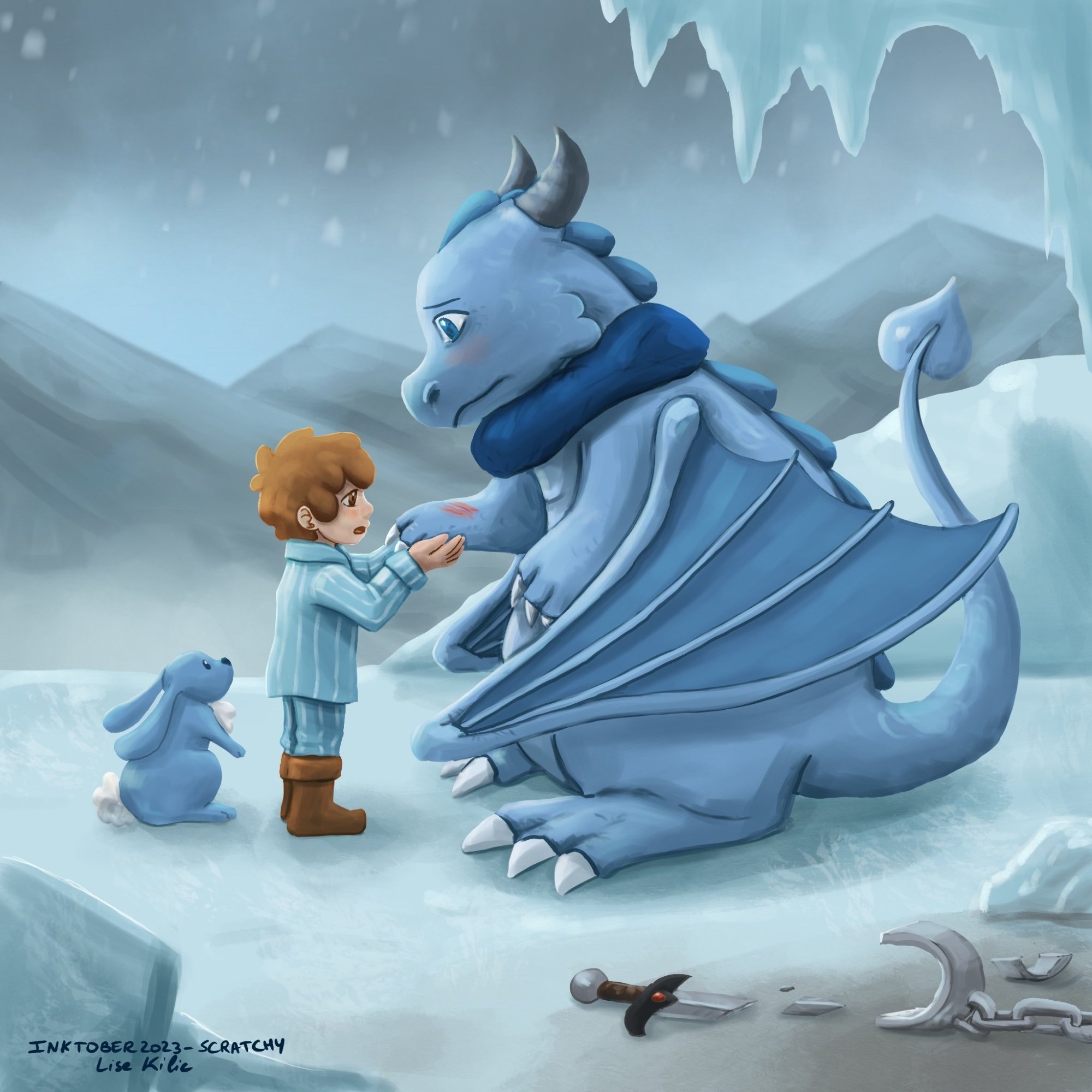Salut tout le monde ! @ndreambonne idée! @stefouMagnifique ce tigre ! 😍 et c’est une bonne idée la langue râpeuse des petits et gros chats comme @diamones @EmifeiBien trouvé ! Je ne me souviens pas de l’air de la musique. Tu nous la chante ? 😆 Ouf le petit dragon s’est fait libéré 🥳 il a attrapé un rhume alors sa voix est un peu « rugueuse » et puis ses écailles aussi… compliqué à illustrer comme mot « scratchy ».1 point