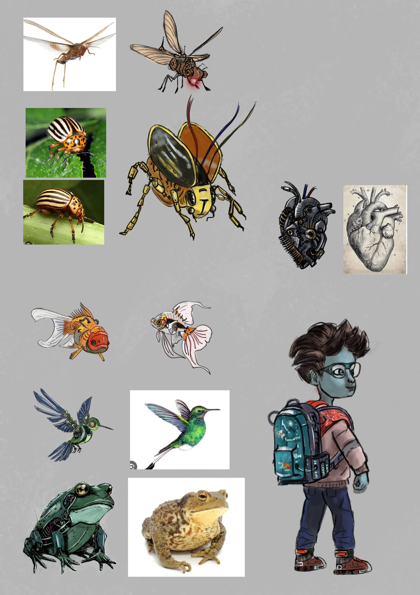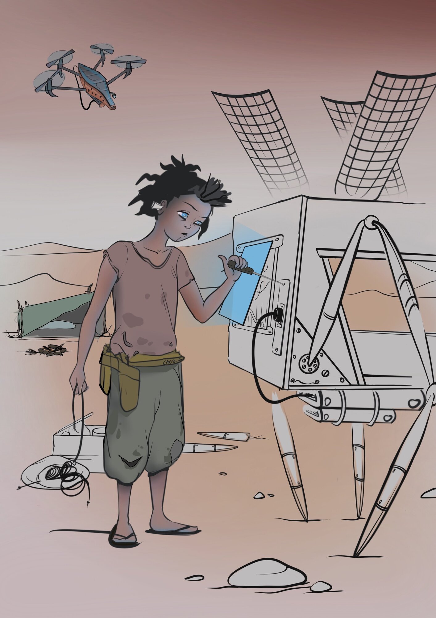 Bonjour! Voici mon croquis pour le DP représentant Rafael 🙂 PS: il n’y a pas de « s » à Mexique 🤭😅 (pour ceux qui ont lu attentivement mes fiches de références 🙂) Je pense que j’ai rien oublié au niveau de la description, je ne fais pas trop de désordre autour de lui parce que je l’imagine très soigné avec ses affaires malgré sa condition de pauvreté. J’ai imaginé qu’il construisait un chariot connecté fonctionnant à l’énergie solaire, ce qui facilitera ses déplacements sur de longues distances. J’imagine qu’il se déplace de villes en villes échangeant ses talents de bricoleur contre un peu de vivres. Son objectif est d’aller à la grande ville afin de pouvoir s’y installer. Quant au robot j’ai eu envie de faire un drone, celui ci fonctionne également à l’énergie solaire et émet des sons pour communiquer. Son squelette ayant la forme et suivant les principes d’un instrument à vent. Il ne peut pas s’empêcher de critiquer le travail de Rafael c’est pourquoi ce pauvre enfant se bouche les oreilles dès qu’il commence à bricoler! Voilà pour la petite histoire 🙂 C’est la première fois que je participe à un challenge du coup n’hésitez pas à me partager vos impressions et vos remarques, elles seront les bienvenues ! 😊🙏2 points