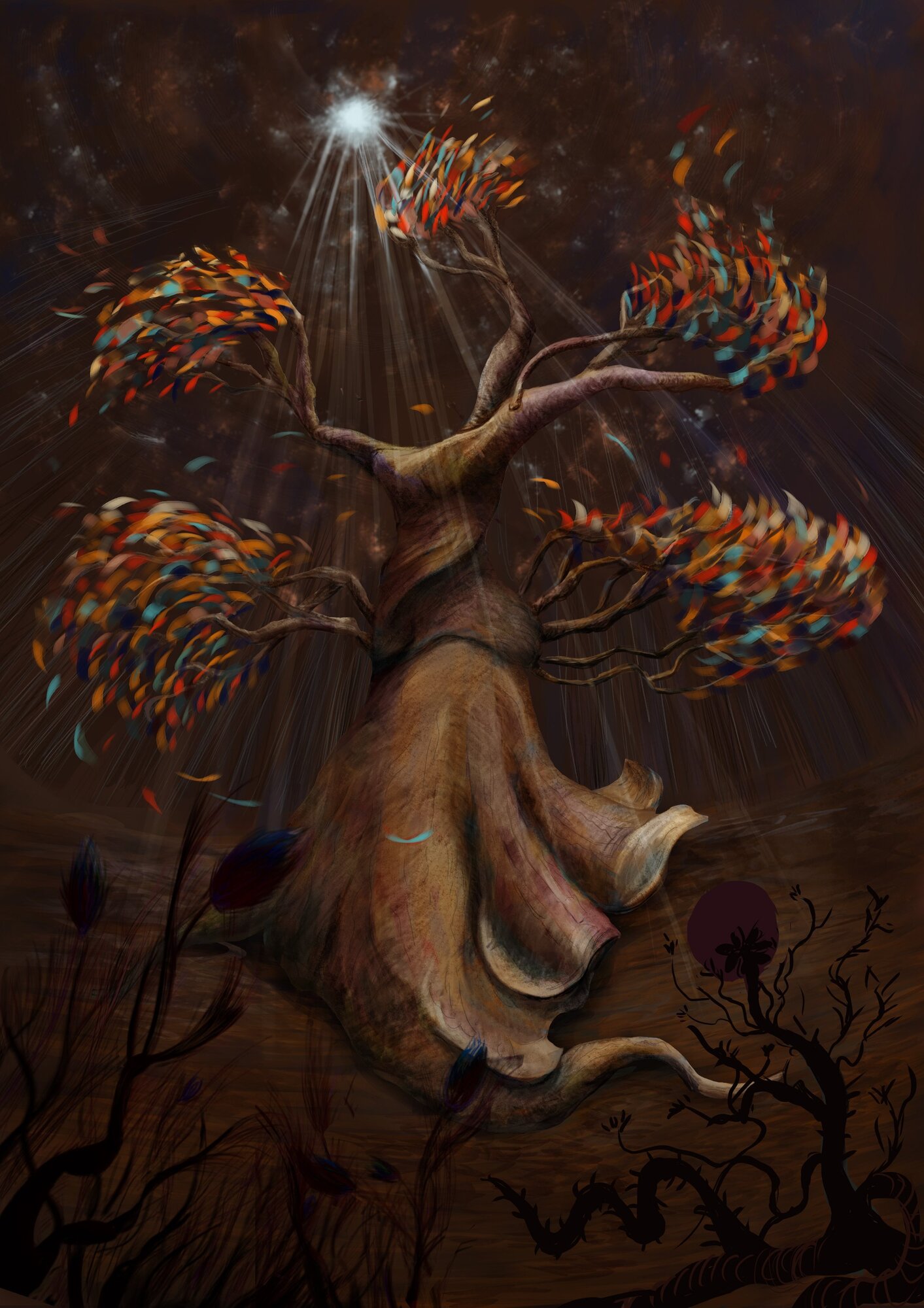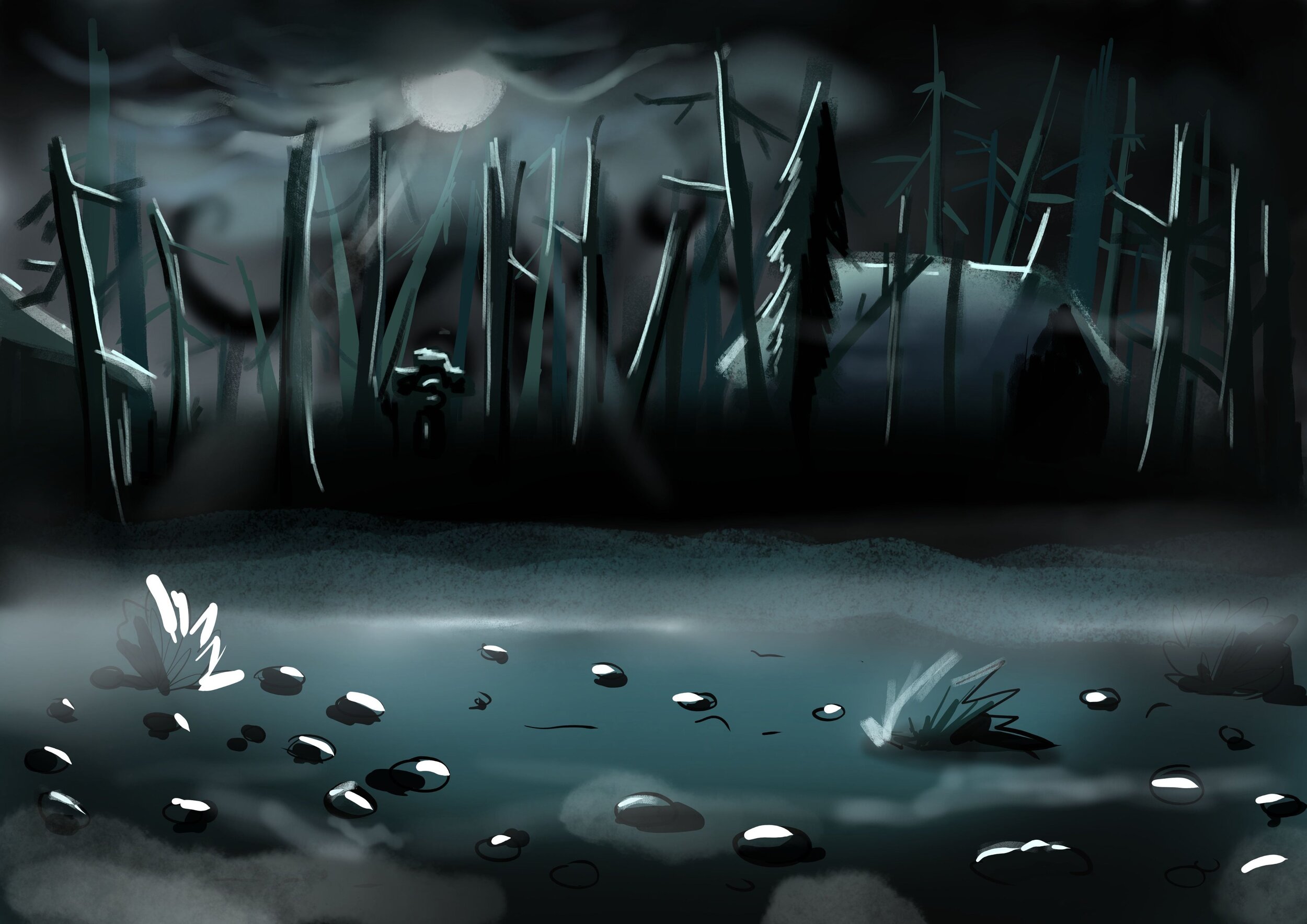 J'ai choisis un décor ce qui reste l'un des sujets les plus difficile pour moi, et j'ai essayé de faire ressortir une ambiance sombre dans cette foret décharnée, de nuit avec pour seule lumière la lune blafarde et une ambiance brumeuse. j'ai un style plutot cartoon, comics en général et faire de beaux décors qui retranscrive une ambiance particulière reste encore pour moi un challenge difficile.1 point