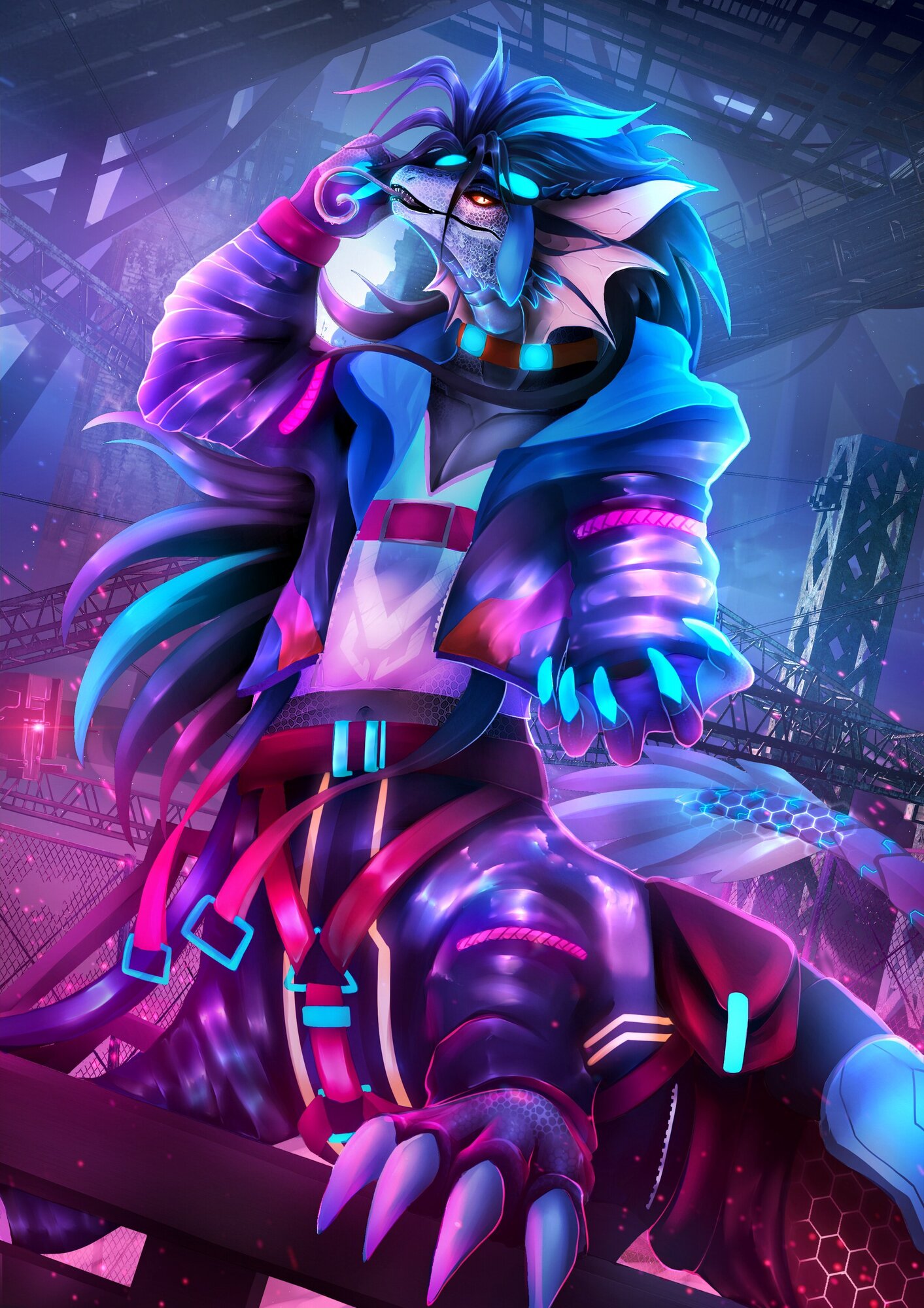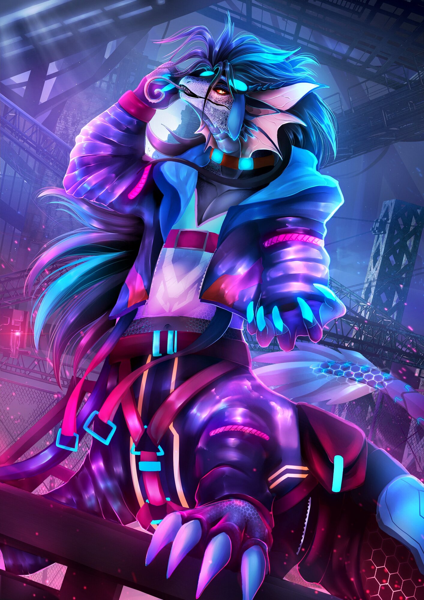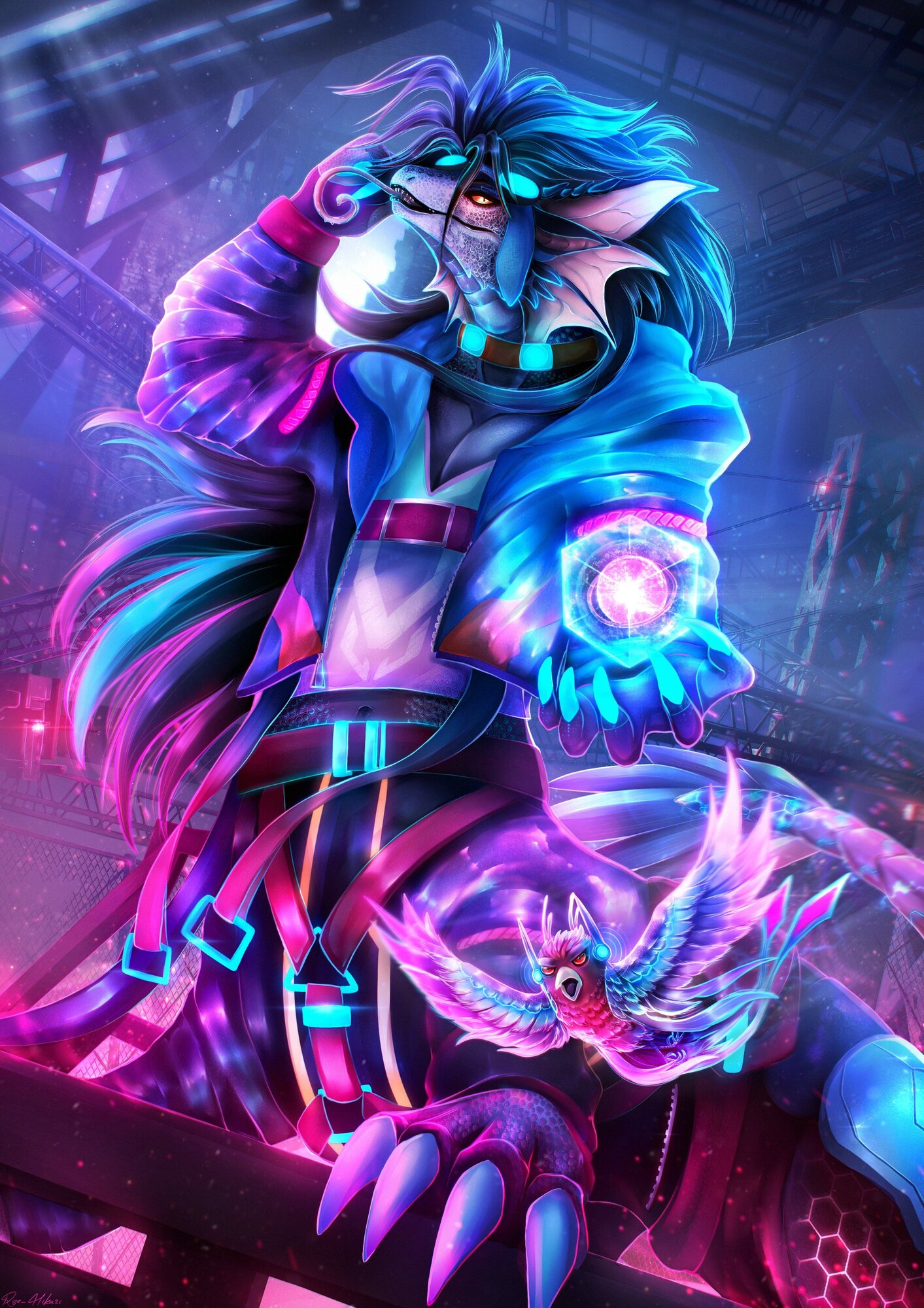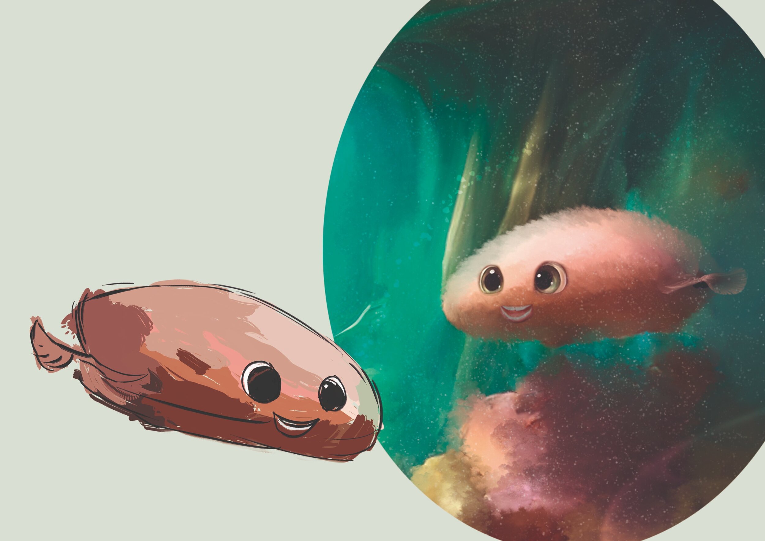 Une fois leur design défini, je me suis penchée sur le concept art de mon illustration. Le format m'a permit de montrer à quel point Tito était imposant, et c'était un vrai challenge car je fais surtout mes illustrations en format horizontal plus que vertical. J'ai cherché à travailler avec des couleurs et des paramètres que j'aimais dessiner, car mon style se base surtout sur les jeux de lumière que j'arrive à créer dans mes travaux. Mon choix s'est donc arrêté sur les lumières néon roses et bleues ! Voici la liste de mes étapes habituelles pour mon process d'illustration: Concept art (d'abord le croquis des personnages/background puis le tout en couleurs pour avoir une idée de l'ambiance que je recherche pour l'illustration finale) Phase greyscale: je peins entièrement les personnages en faisant déjà attention à mes placements d'ombres mais je reste quand même assez synthétique pour que ça ne pose pas de problème lors du rendering Coloring des personnages Création de l'ambiance des couleurs/lumières sur les personnages et début de conception du fond Rendering Derniers effets Pour cette illustration j'ai suivi le même processus, sauf pour Flix, que j'ai ajouté à la fin car je voulais m'assurer d'avoir un beau rendering pour Tito dans la zone où Flix devait être placé, pour que ça ne paraisse pas étrange lors du rendu final. Pour la situation, j'ai imaginé une scène dans une sorte d'entrepôt gigantesque et prétendument abandonné. Tito et Flix sont en mission, ils ont récupéré une relique qui allait servir à alimenter une machine gigantesque conçue en secret dans cet entrepôt à l'abri des regards, par une race alien ennemie souhaitant entrer en guerre contre les humains. C'est un cube d'énergie très ancien abritant une sphère aux pouvoirs d'alimentation plus grands encore. Tito est perché assez haut dans la zone car malgré son corps massif, il garde les traits de son espèce: une agilité et une rapidité à toutes épreuves. Pour rappeler son côté arrogant et "roi du monde", il prend la pose avec son précieux trophée dans sa main, alors que Flix garde son air très sérieux. Je l'ai représenté en plein vol, en train de patrouiller dans la zone en tentant de détecter des formes de vie environnantes grâce aux ondes émises par ses broches, qui le préviennent en cas de présence dans les 400 mètres à la ronde. Car une fois l'objectif de la mission en possession, il faut bien réussir à quitter la zone sans complications ! C'est pour ça que Flix a un rôle important dans toutes leurs entreprises. Non seulement il couvre les arrières de son ami à chaque fois, mais en plus il est très sage et l'aide à prendre de bonnes décisions. En mission diplomatique, c'est d'ailleurs lui qui parle, car Tito est incapable de faire preuve de politesse plus d'une minute, et son attitude lui a déjà valu quelques ennuis.3 points