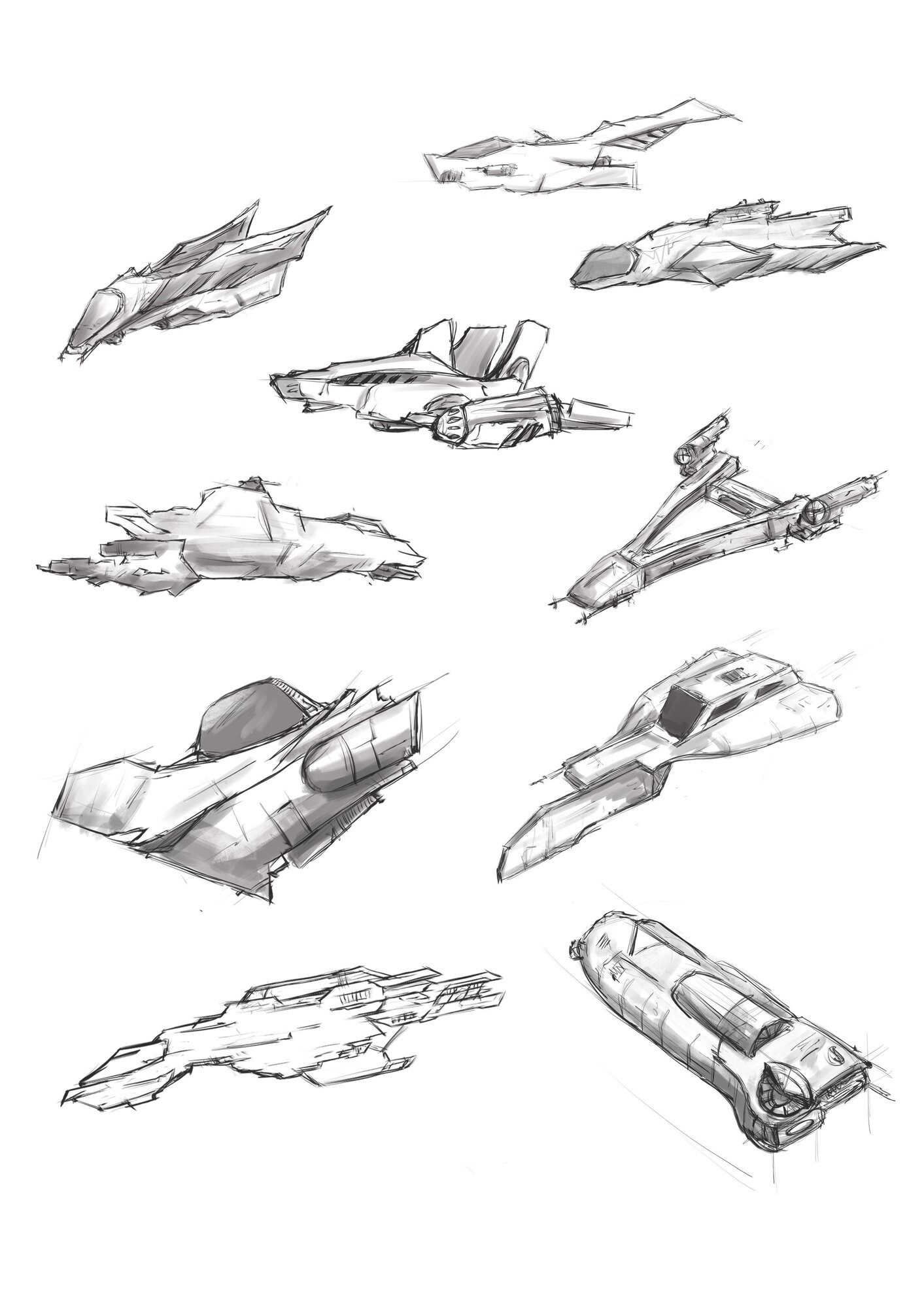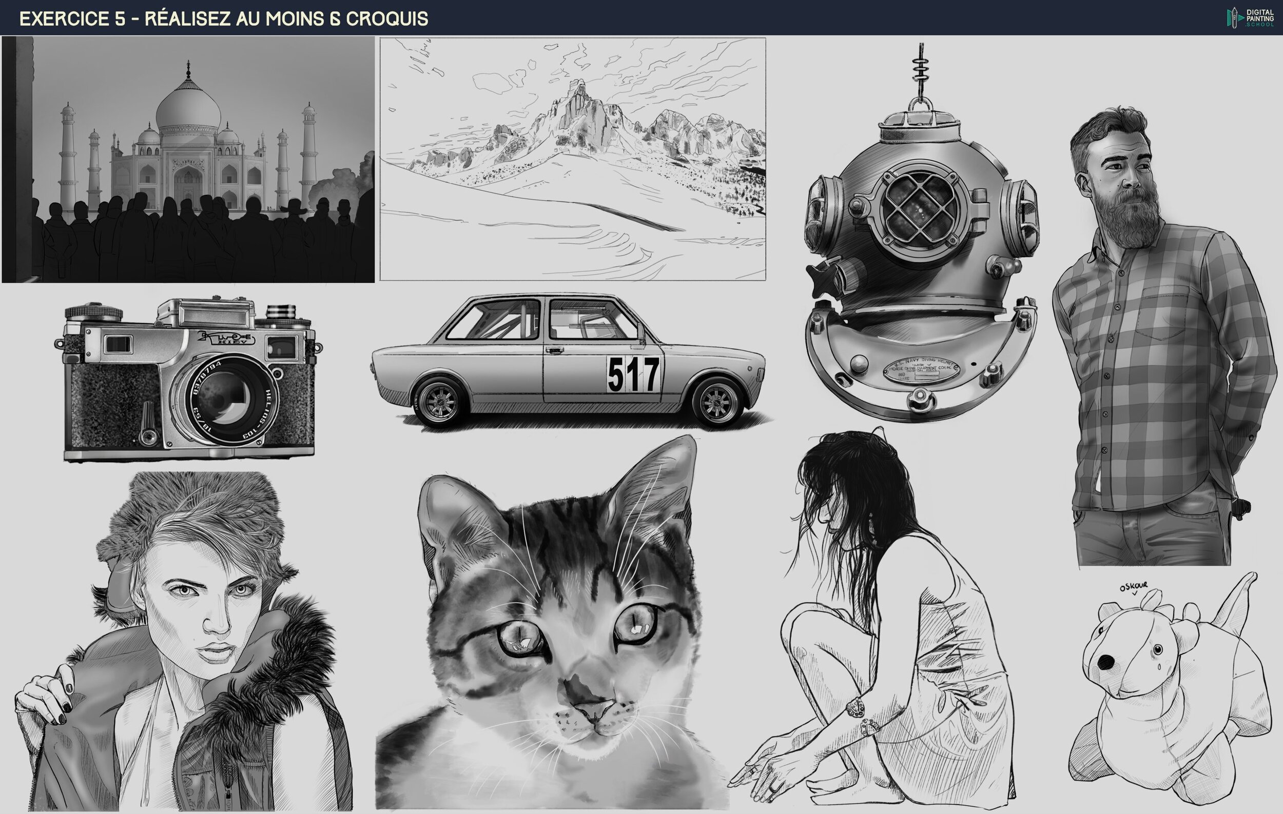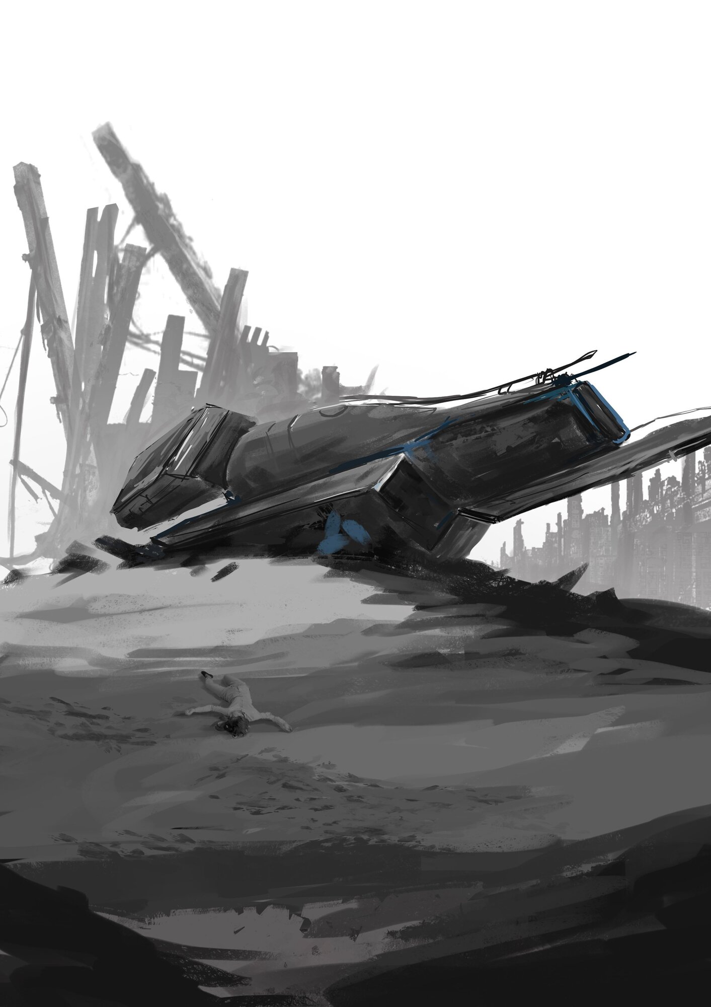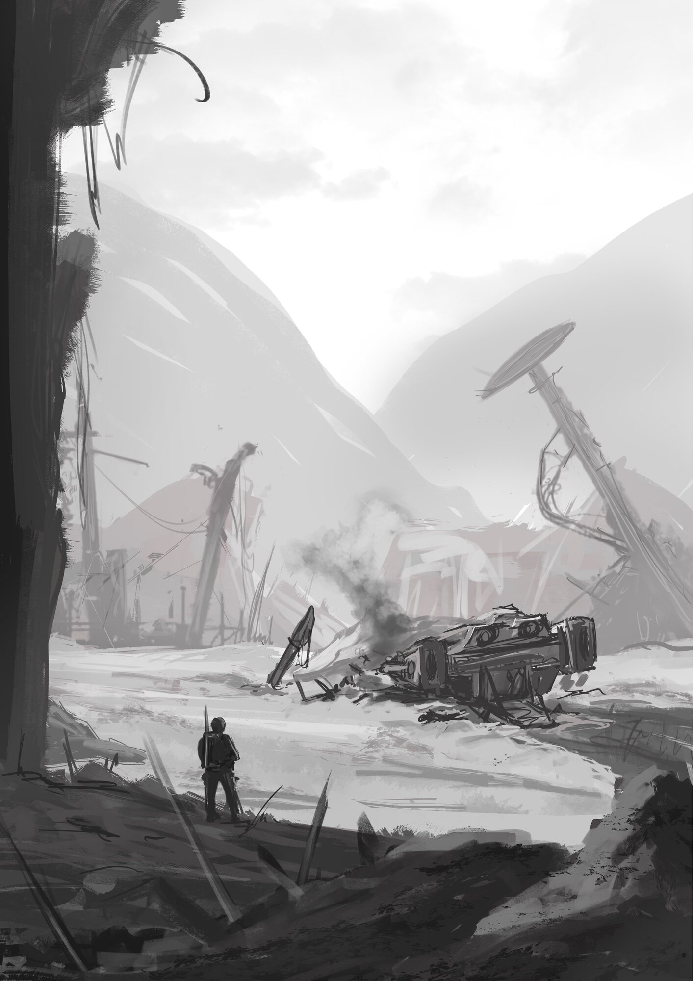 Bonjour, je poste ici tardivement, c'est la première fois que je participe au challenge de digital school painting, je n'avais pas compris qu'il fallait poster au fur et à mesure. Comme je viens de le dire c'est la première fois que je participe officiellement, je suis depuis un moment les différents challenge et autres sorties youtube mais je ne m'étais jamais lancé. Etant un grand fan de Star Wars, Halo et de space opéra je ne pouvais pas ne pas participer cette fois. Je vous présente donc mon travail et mes différentes étapes de recherches. Dans un premier temps je voulais me diriger vers les rues coupes gorge, malheureusement je ne trouvais pas l'inspiration, rien ne ressortais de mes premiers croquis, j'ai donc dévié vers les vaisseaux, et en lisant le brief du vaisseau éclaireur j'ai tout de suite accroché. J'ai réfléchi dans un premier temps au vaisseau en lui même avant de me lancer dans une composition. Pour moi un vaisseau éclaireur doit être à la fois furtif et rapide mais son design doit être aussi être dynamique ou aérodynamique. J'ai donc fait des vaisseaux un peu au hasard, à partir de lettre d'alphabet à la manière de star wars ou de forme aléatoire puis je les travaillais au fur et à mesure pour donner des formes de vaisseaux qui me convenais. L'un d'eux me plaisait tout particulièrement et à mes proche également alors j'ai opté pour celui ci. Je l'avais dessiné comme un vaisseau classique mais une lame d'acier à l'avant qui lui permet de voler au ras de l'eau et sur la neige. Je lui ai rajouté des réacteurs sur les côtés pour les longs trajet et la tourelle comme dis dans le brief. Ensuite est venu le temps de faire des compositions pour l'illustration finale. Pour moi ce qui est important dans une composition c'est le fait d'avoir une lumière qui fonctionne et qu'on distingue bien les différents plan grâce à la perspective atmosphérique. Je fais très souvent les composition directement en masse de noir afin de tout de suite avoir la lumière, je ne savais pas trop sur quoi partir à part que je voulais que ça soit un crash, j'ai donc commencé par une composition en montagne avec le vaisseau qui pique du nez mais cela ne m'a pas convaincu. Je suis donc parti sur une composition désertique et rocheuse avec le vaisseau au centre déjà crashé. Pour être sûr j'en ai fait une version sur une dune de sable mais là je voulais le vaisseau plus au centre de l'attention et donc je lui ai donné plus de place dans la composition et je l'ai bien centré. En faisant mes recherches de couleurs je ne trouvais pas de couleur qui me plaisait et je me suis dit pourquoi pas partir sur de la neige, comme j'aime faire de la roches et des montagnes alors pourquoi pas faire ce que je sais faire. Alors ma dune c'est changé en montagne enneigé. J'ai fait le choix de recouvrir le vaisseau et le corps du héro avec la neige afin de les encrer un peu plus dans la composition, les branches rajouté aux premier plan sont là pour diriger le regard dans un premier temps mais aussi pour habiller et enfermer un peu la composition. Voilà Je suis très content d'avoir participer à ce challenge. Merci et bravo à tous 🙂2 points