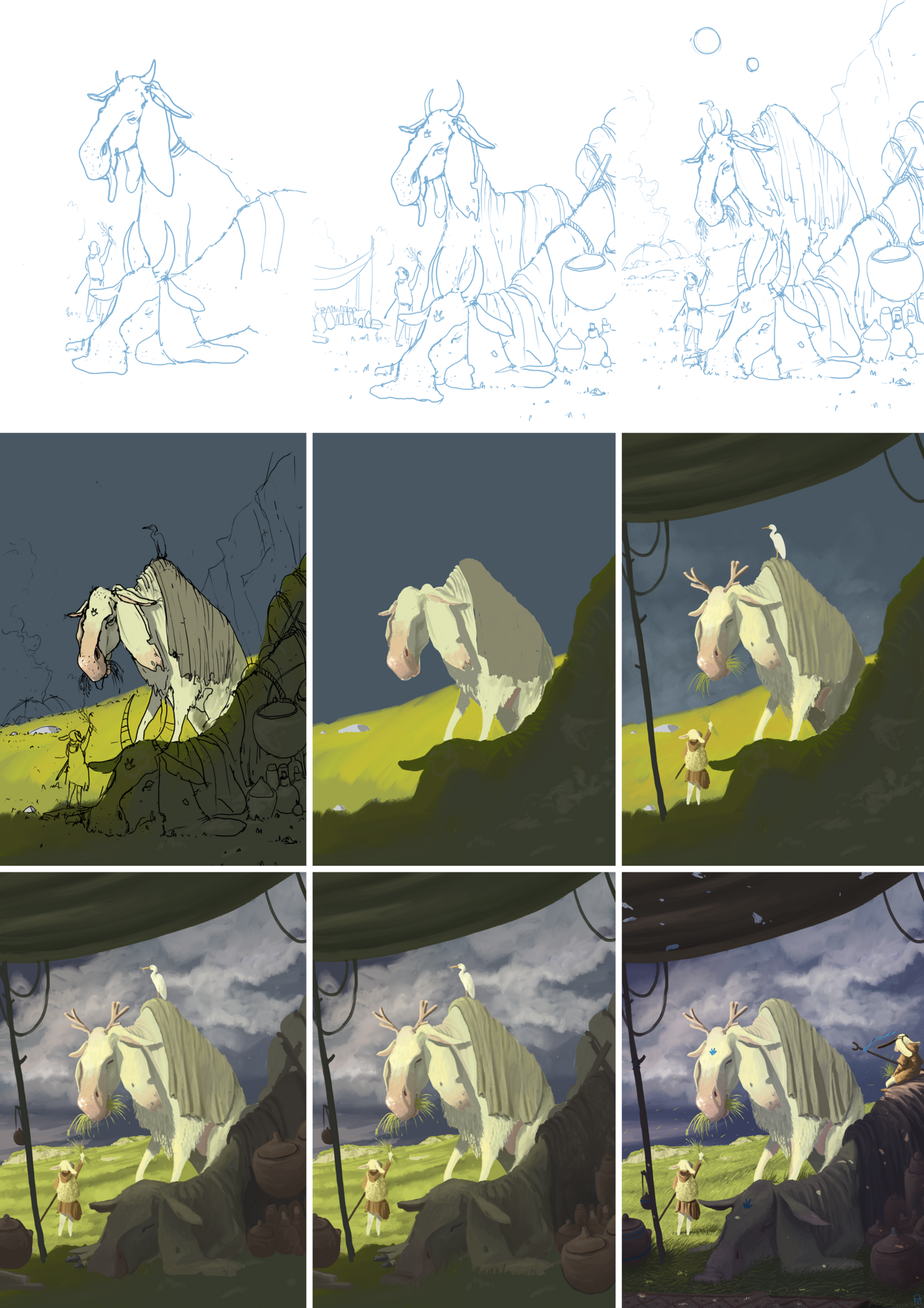 Bonjour à tous ! Vous trouverez ici mes étapes et recherches pour le Challenge 17 ! J'ai choisi de représenter les PIPOLINOS : le peuple de marchands futés ! J'ai voulu ici illustrer un moment de détente et de bivouac des pipolinos, aprés une longue journée de travail et de commerce ambulant ! J'espère que ça vous plaira ! Merci pour ce challenge inspirant ! Dimitri Mosso.2 points