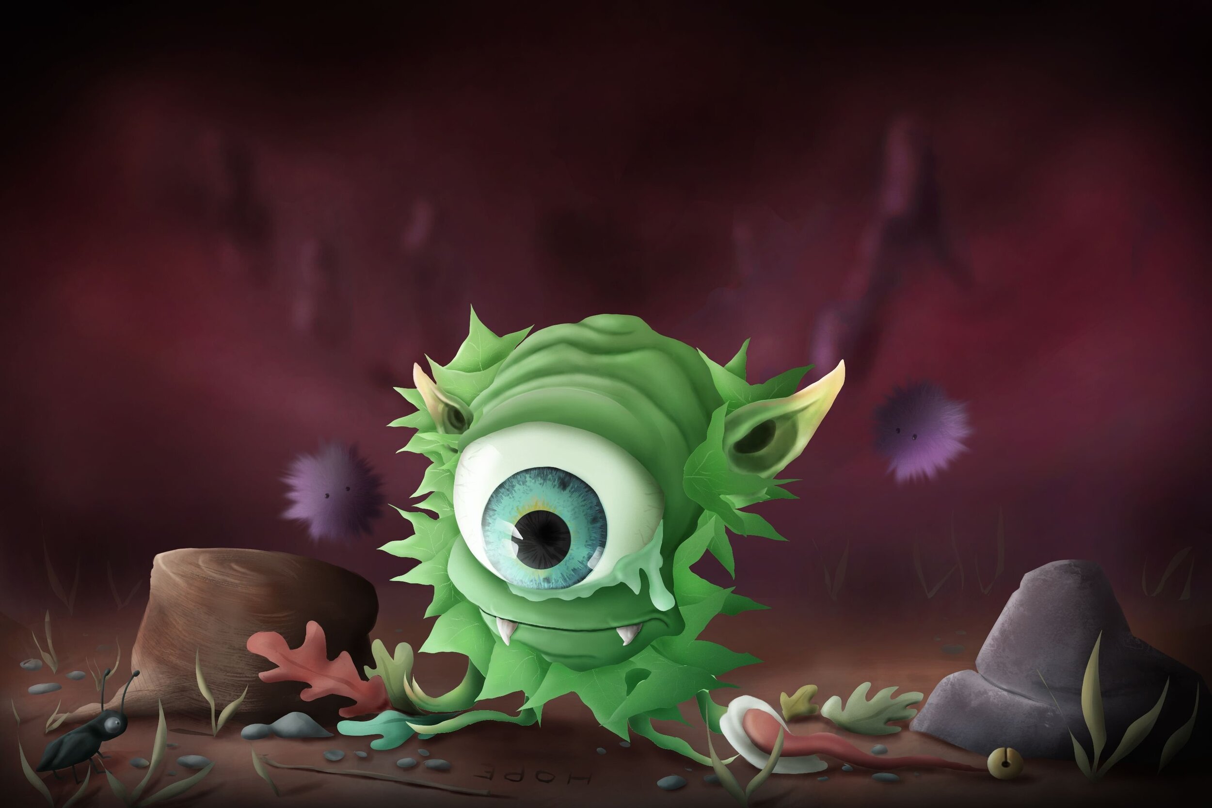 Voilà l'exo 3,5 ! C'était sur PS donc pas spécialement découverte de Krita mais surtout des masques ! (C'est ultra pratique) Et c'est cool d'essayer un truc perso rapide avec le peu qu'on a déjà appris, ça fait vraiment plaisir 😊 Grosse galère sur la main ! Ce petit monstre a dû me prendre 6h, c'est un peu sans queue ni tête mais j'ai testé des trucs pour mon DP final où je suis censé reprendre celui de début de formation, j'espère qu'il vous plaira et sinon , qu'il vous fera peur😛1 point