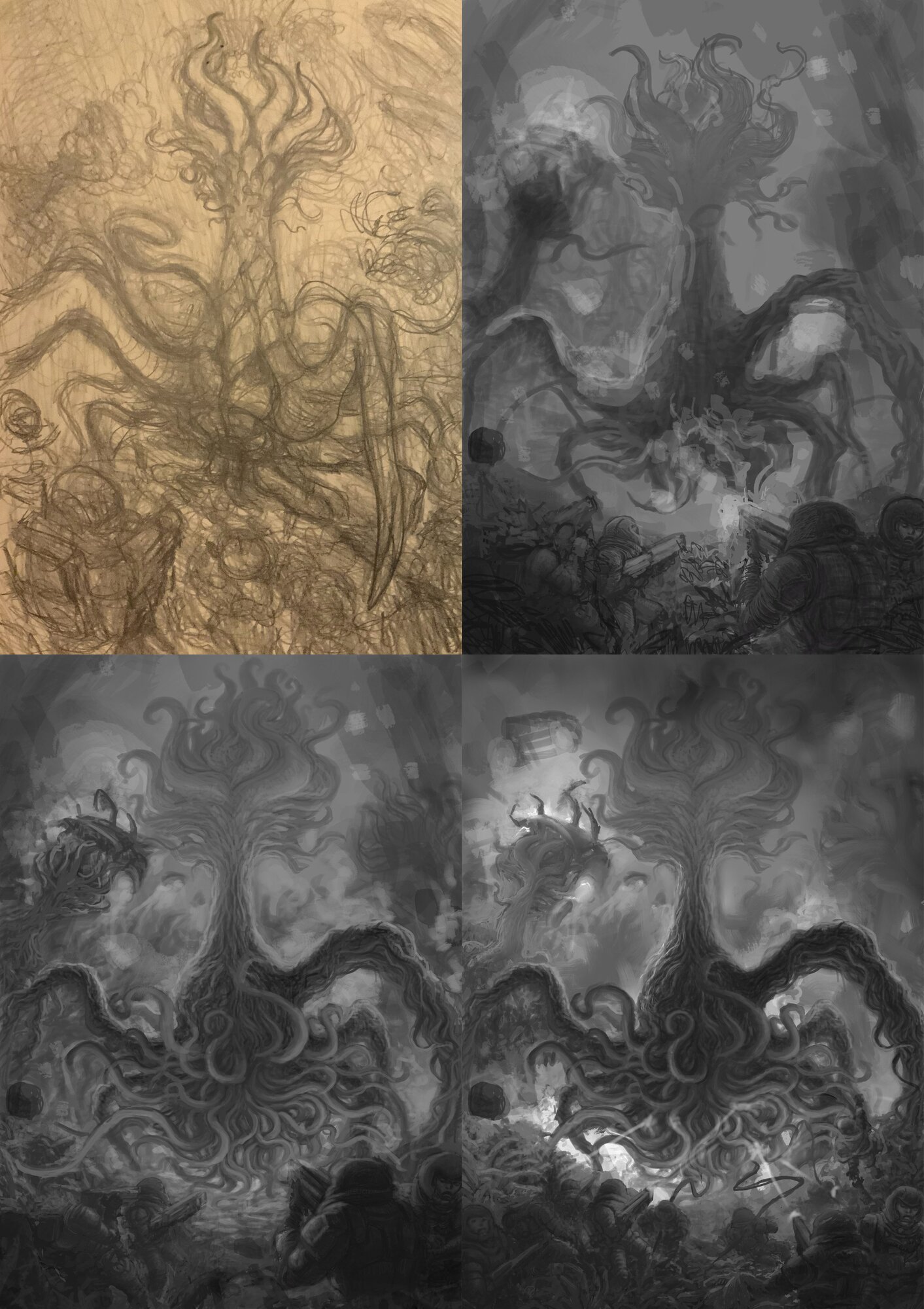 Du creature design pour changer. Je n'ai pas tellement l'occasion de designer des monstres avec mon projet principal (Püpa) alors j'ai voulu changer d'univers et en gribouiller un qui pourrait s'inscrire dans une IP Dark Fantasy/Gothique à la Castlevania. Dessiner un squelette fut aussi une très bonne opportunité de pratiquer les espaces négatifs! Je ne suis pas tellement satisfait du résultat mais l'idée en elle-même me plait toujours beaucoup. J'aimerais développer un peu cet univers par la suite mais je vais surtout prendre le temps de pratiquer les fondamentaux et retourner travailler sur mon projet principal pour le moment. J'espère réussir à être plus productif, j'ai pas mal d'idées en tête qui ne demandent qu'à exister1 point
