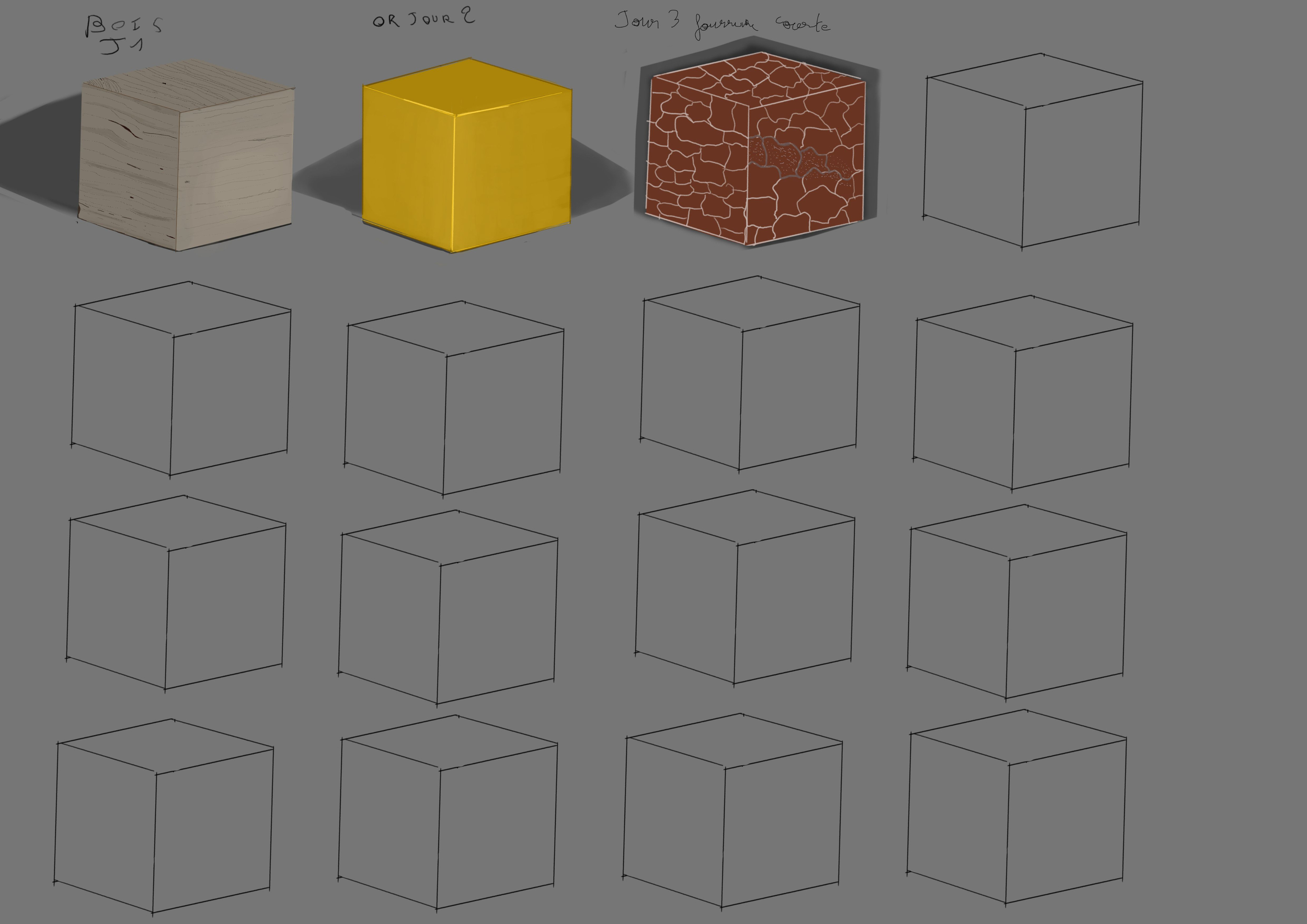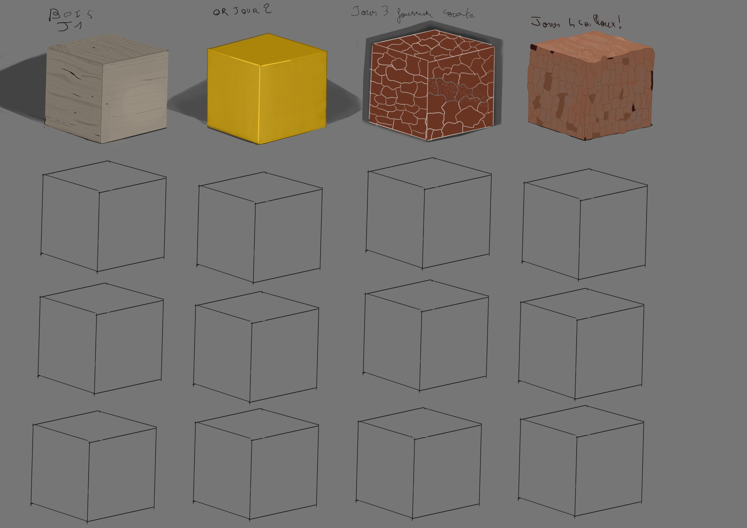 Hello, J'ai galèré hier avec le bois. Du coup j'en ai refait un autre ce soir après un échauffement sur l'or. Finalement je préfère le bois plus clair. Je suis partie sur le tuto pour l'or. Plus facile que de partir d'une photo. J'ai fait ça sur une tablette Android avec hi paint. Beaucoup de mal à trouver les bons brush. Faudra que j'essaye sur ma tablette principale pour voir si je me débrouille mieux. Courage @Arktic c'est vrai que cet exo demande du doigté. Hier soir j'étais dégoutée. Clairement je trouve l'or moins chiant à faire que le bois. 😏 Tu nous a fait un trophée @Bonzaii Qui va gagner cette récompense ? Je me suis inspirée de tes teintes @yurinomai pour le 2ème cube de bois. J'arrivais à rien hier. J'espère que tu ne m'en tiendra pas rigueur. Ça m'a permis de comprendre comment on pouvait simplifier la texture bois. Bon ce n'est qu'une pâle imitation de ta version mais ça m'a débloqué. 😛3 points