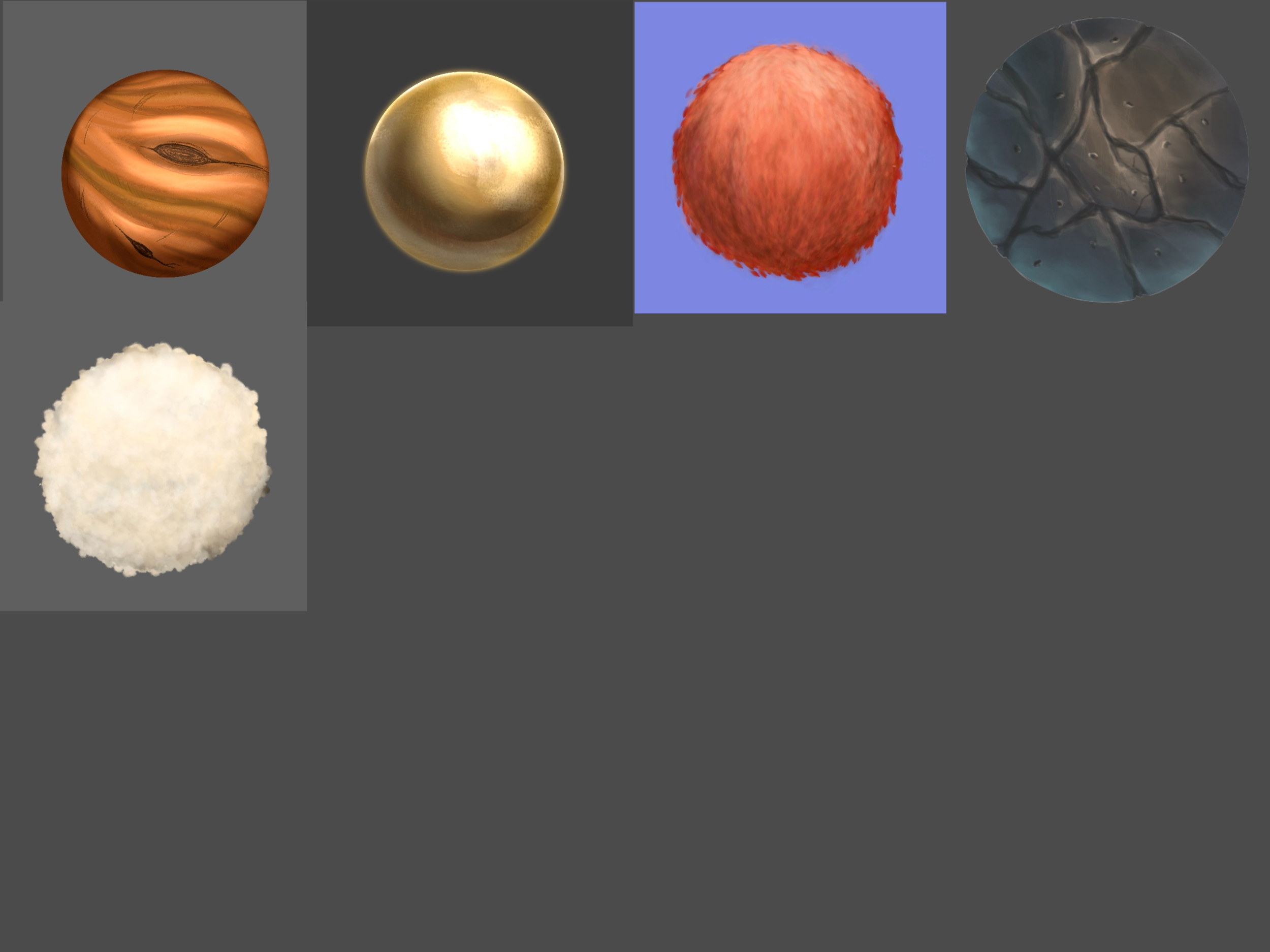 Bonsoir ! Bon, j'ai pris un peu de retard à cause des p'tits soucis de santé de mon chat qui n'étaient pas prévus, mais il est de nouveau sur pattes, je peux donc dessiner à tête reposée. ♥ J'ai pas réussi à faire 4 textures d'un coup, donc je rattrape déjà la pierre et l'or. La suite viendra plus tard, je l'espère. J'ai beaucoup plus galéré que ce que je m'étais imaginé. 🤯 Et pour te répondre @Virg, ça ne m'embête pas du tout que tu te sois inspirée de ma version stylisée du bois, bien au contraire. Si le travail des uns et des autres permet de débloquer notre process, c'est génial. C'est un des buts de faire cet exo tous ensemble et de partager nos résultats ici. 😃7 points