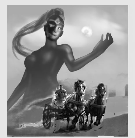 Et il est temps de reprendre le DP! La mythologie grecque, c'est le sujet parfait! Et je pars sur Eris. La déesse de la discorde. C'est à cause d'elle que la guerre de Troie a commencé et de sa pomme. Pour ceux que ça intéresse : J'ai fait plusieurs essais de composition et j'hésite entre les deux. La première est plus centrée sur la discorde en venir et l'autre sur le résultat. Je trouve que la deuxième composition est plus dynamique. Mais l'autre correspond plus à ce que je voulais montrer à la base. Je pense aller sur la deuxième finalement.1 point
