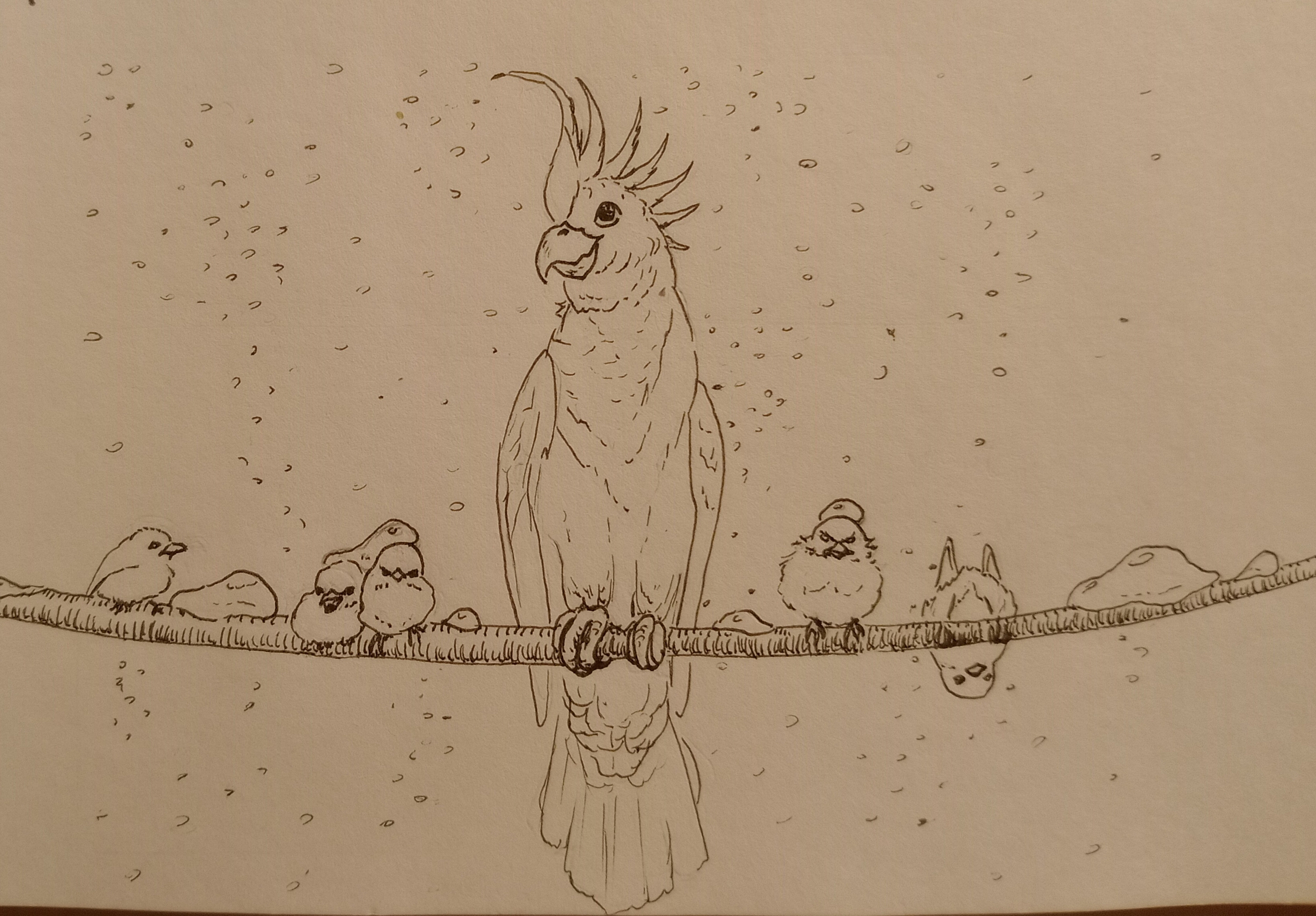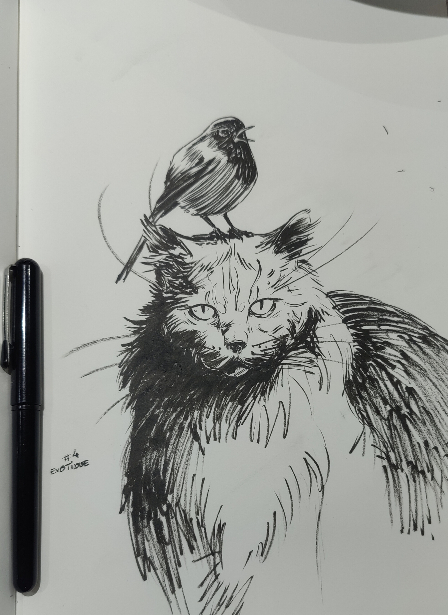 @alkecesa super son expression @Katyusha avec les couleurs ça rend trop bien ! @Diamones j’adore voir les nouvelles aventure de ton dragon chaque jour ! Moi je suis parti sur un Toucan aujourd’hui. Je me suis interdit de mettre de la couleurs pour rester dans la même ligne de conduite depuis le début.17 points