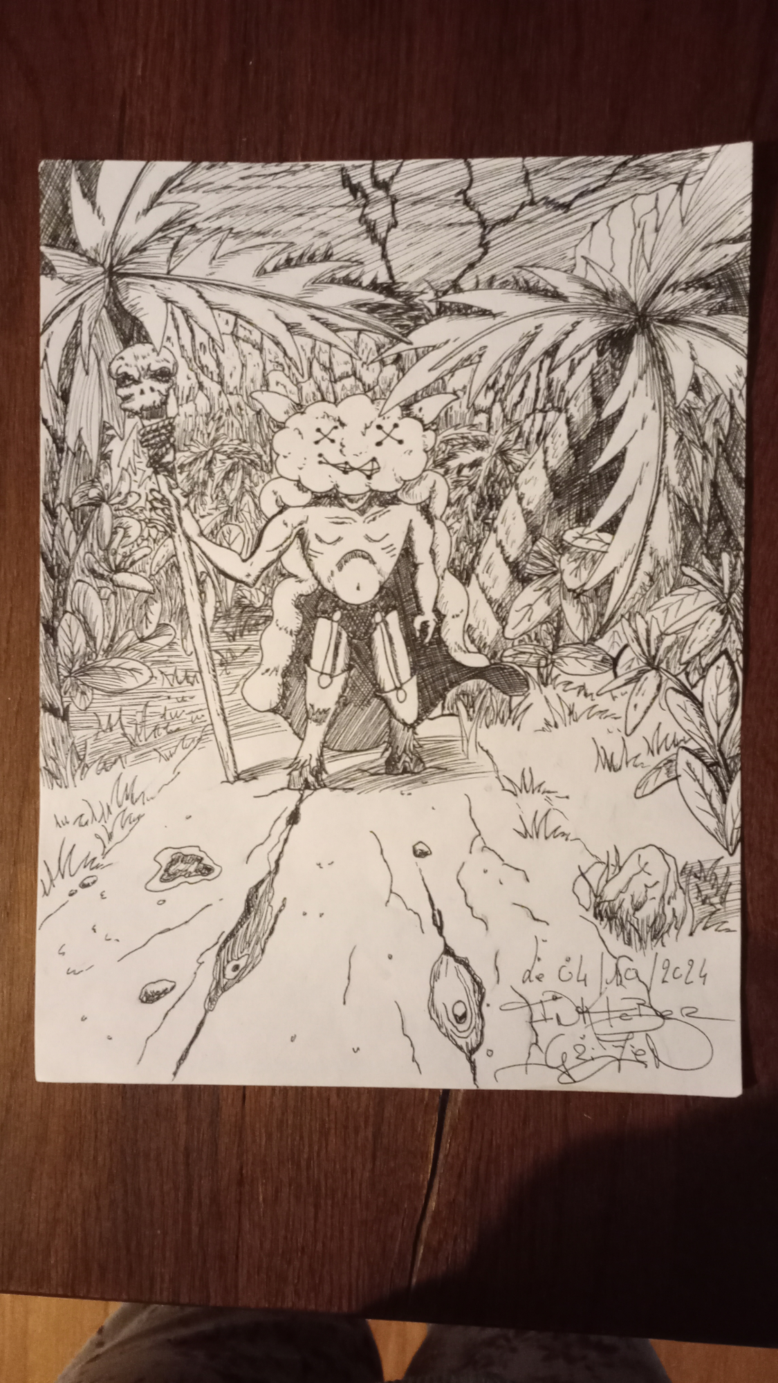 Bonjour à tous ! @Deny J'adore l'ambiance de tes dessins, tu as vraiment une patte touchante avec tes coups de crayons. Et très bonne idée de mettre l'ambiance du thème au 18ème siècle 😍. @Gloubibarjo Oh le gros minou. Il est très chouette mais je ne m'y approchais pas 😆. @Archange.St.Michel Oui effectivement... je me demande où faut-il regarder pour le thème exotisme. hmm hmm 😚😚🫣 Le rendu est très sympa 😄 . Pour ma part voici ma participation. J'avais revu il n'y a pas très longtemps l'épisode de la série animée TinTin et les 7 boules de cristal, avec la momie qui m'avait terrifié étant petit. J'y ai repensé mais je m'en suis éloigné au final, tout en essayant de garder cependant le thème exotisme de la culture d'Amérique Latine... un peu.19 points