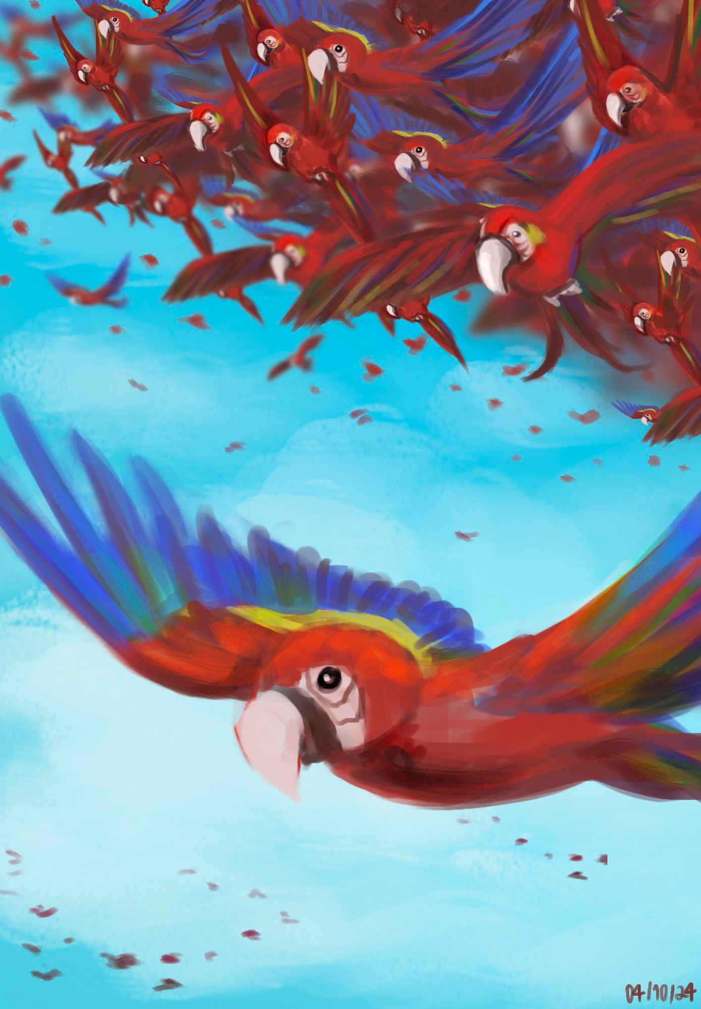 Hellooo ! Et voilà pour l'exotisme 🦜🦜 En dessinant, je me repassais dans ma tête tous les cours sur les répétitions et les nuées, c'était bien utile 😁 @Denyje rejoins @ApostroKesur ton style, vraiment unique comme ambiance, j'aime beaucoup ! @stefou je suis vraiment fan de tes illustrations à chaque fois ! Ça te prend combien de temps d'en faire une comme ça ? Avec ce niveau de détails, perso j'en aurais pour des heures et des heures :o Encore de belles créas aujourd'hui, hâte de voir la suite 😄18 points