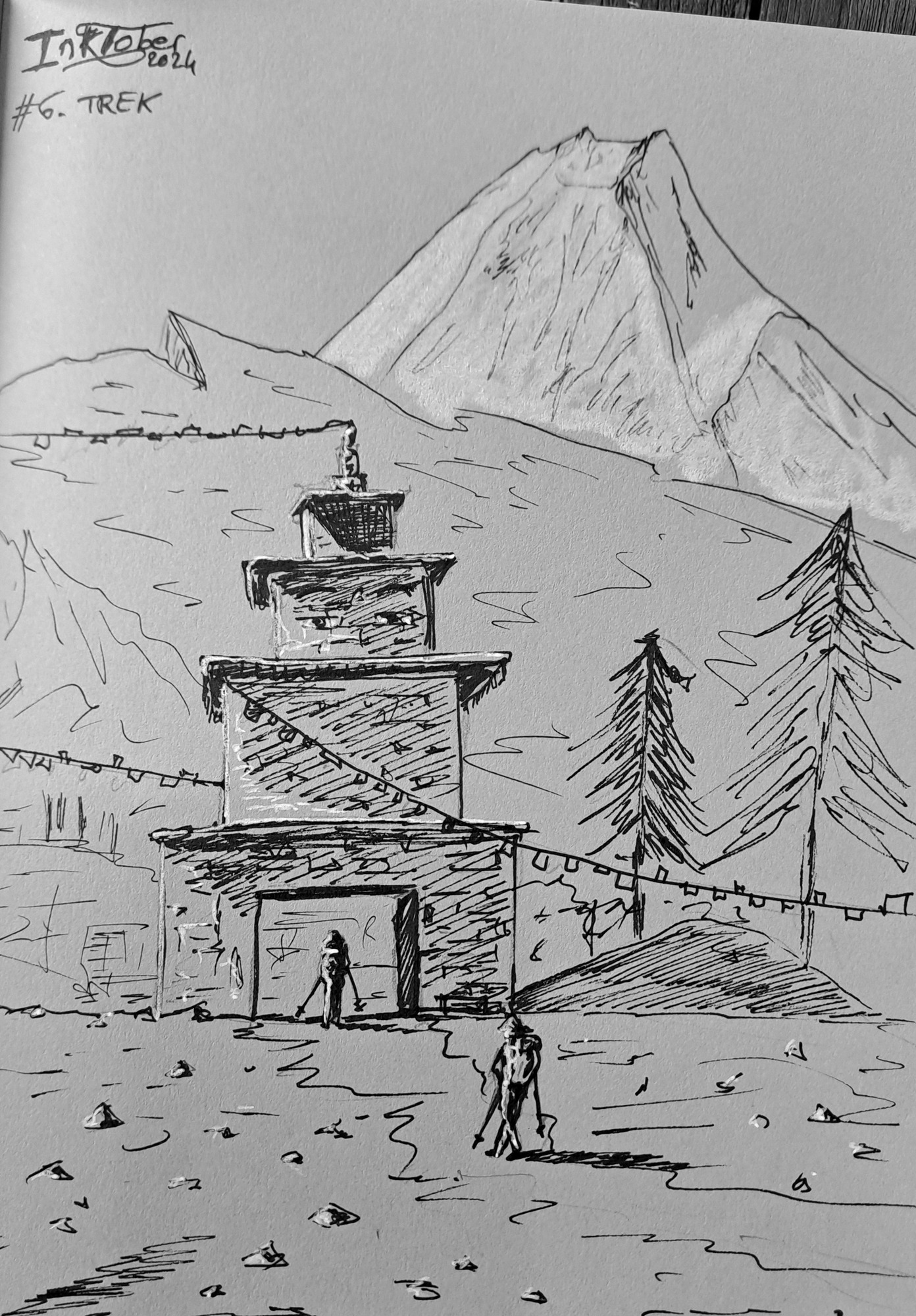 @Deny Trop cool! toujours autant de storytelling! Tout est top ! @ApostroKeFais moi penser à ne jamais aller dans cette forêt.... @Arnoça prends tournure ! @daffTu as bien retranscrit le côté zen de l'Himalaya @poltu On sent bien le côté rude de la montagne! belle réussite dans ton coup de patte. En parlant de patte c'est quoi vers le bas on dirait un chat debout 😜 @Piou777Tu as bien mis en évidence le temps froid @artony Un côté graphique très intéressant @Archange.St.Michel Un style complétement différent d'hier! t'as fait quoi pour en arriver là MDR @Hatsueffectivement la rando peut se faire à cheval, efficace !! @Diamones Tout mimi ce dragon!! @alkecesa Y a du potentiel pour nous raconter une belle histoire !8 points