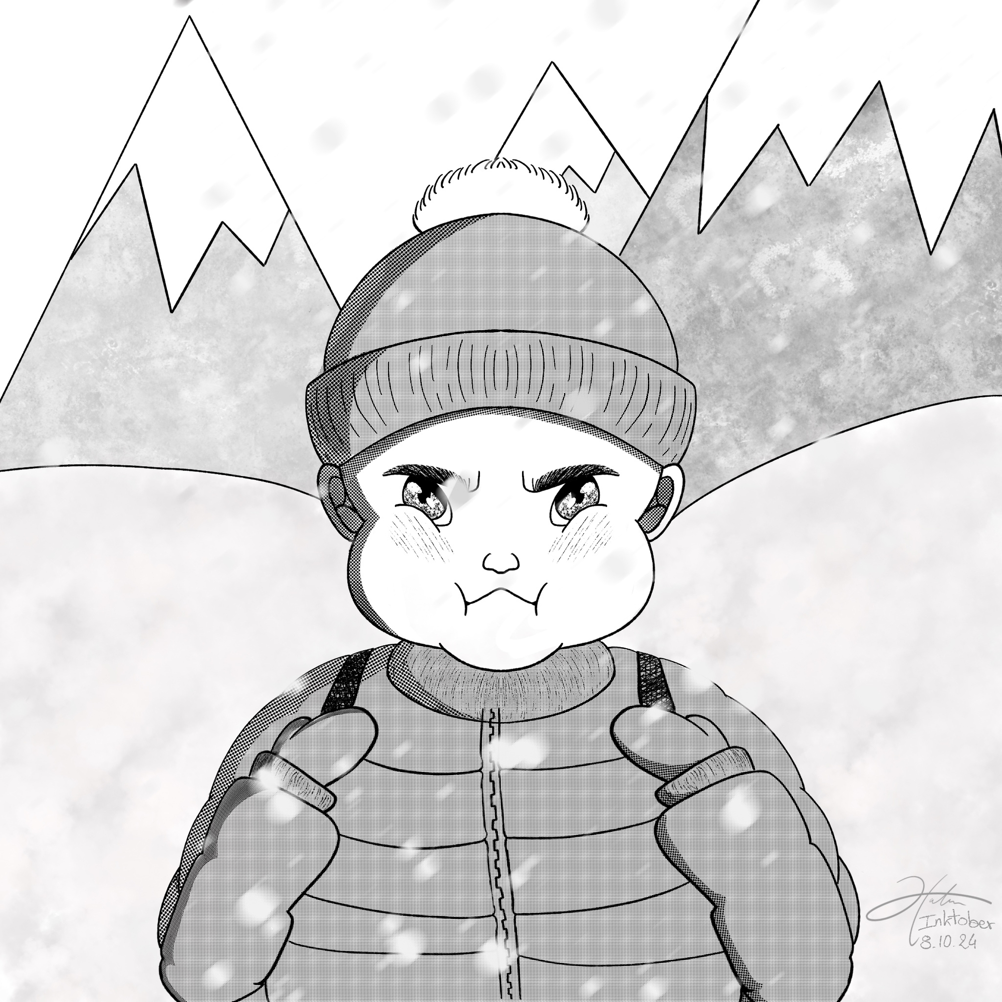 coucou les gens!! @Archange.St.Michelil a l'air tellement heureux sur son dolmen, ton golem! @ApostroKebrrrrrrr, ouais non, moi je vais rester sur la terre ferme @Gloubibarjoil est tellement tranquille là, à patrouiller son territoire @Arnosuper ces marches!! @stefoule bonheur d'une ptite rando en raquettes sous le neige..... avec le bon chocolat chaud à l'arrivée! @daff déterminé! @comicktout mimi! @Hatsumais tellement!! @Diamones mais il aura un fessier d'enfer une fois au bout! Quant à moi, j'ai continué avec mes persos cornus (je ne dessine pas de persos, c'est mon challenge pour cet inktober!). Avec une bestiole poilue, parce que!16 points