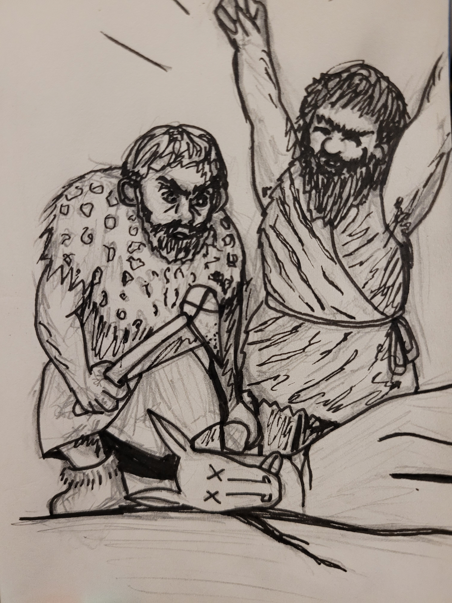 Bien le bonsoir ! @ApostroKej'adore cette nouvelle de Lovecraft, j'aurais jamais fait le lien avec la créa de @Denysi tu n'en avais pas parlé, mais maintenant que tu le dis, il y a un truc 🤔 @daffmagnifique ton dessin, une maîtrise des valeurs au top ! @Haeresis ooooh trop bien la réf, je valide à 100% 😄 Quant à moi, je n'ai pas atteint des sommets d'originalité aujourd'hui, j'ai dessiné le contexte dans lequel j'ai entendu le mot "nomade" pour la première fois... les tribus préhistoriques 🦣7 points