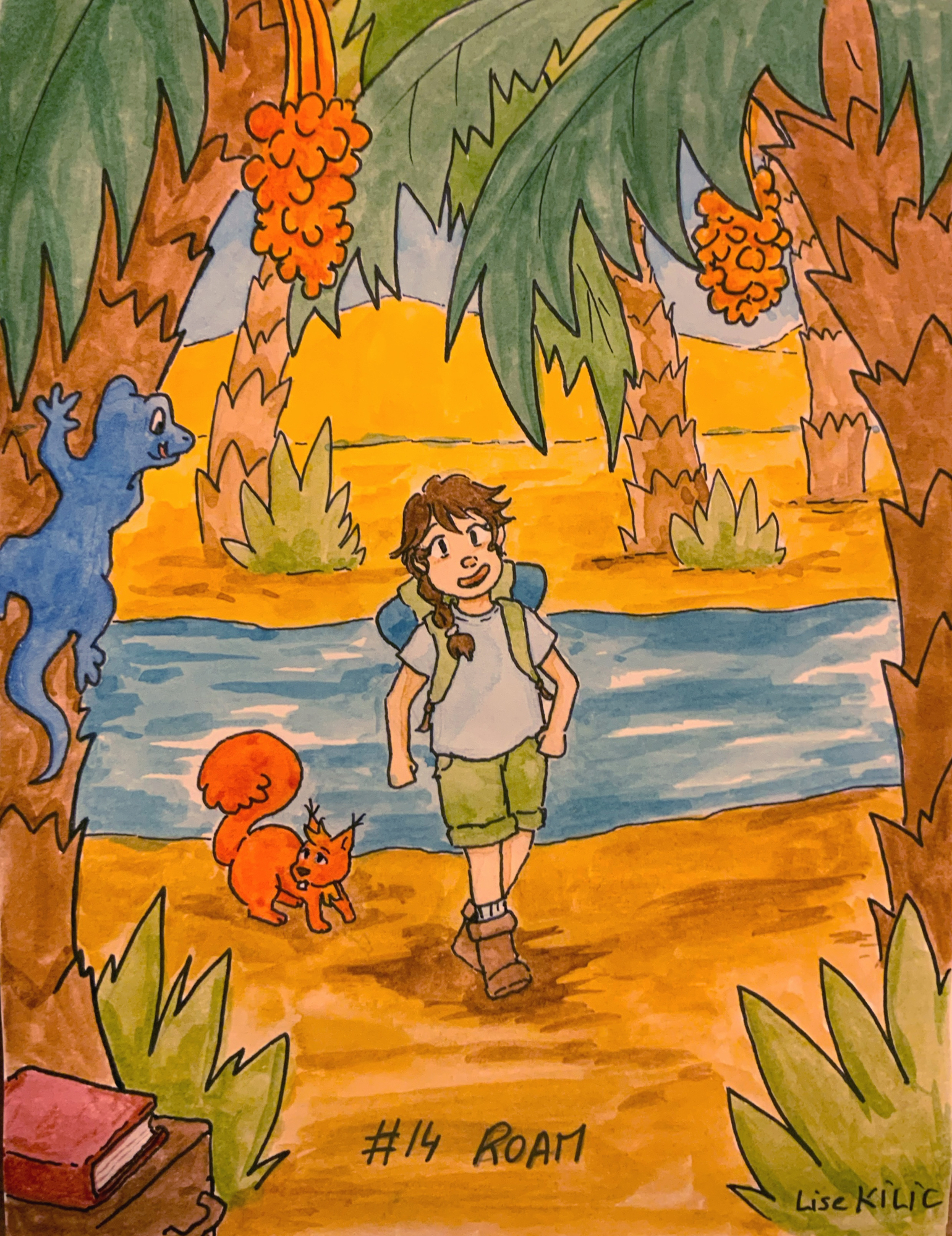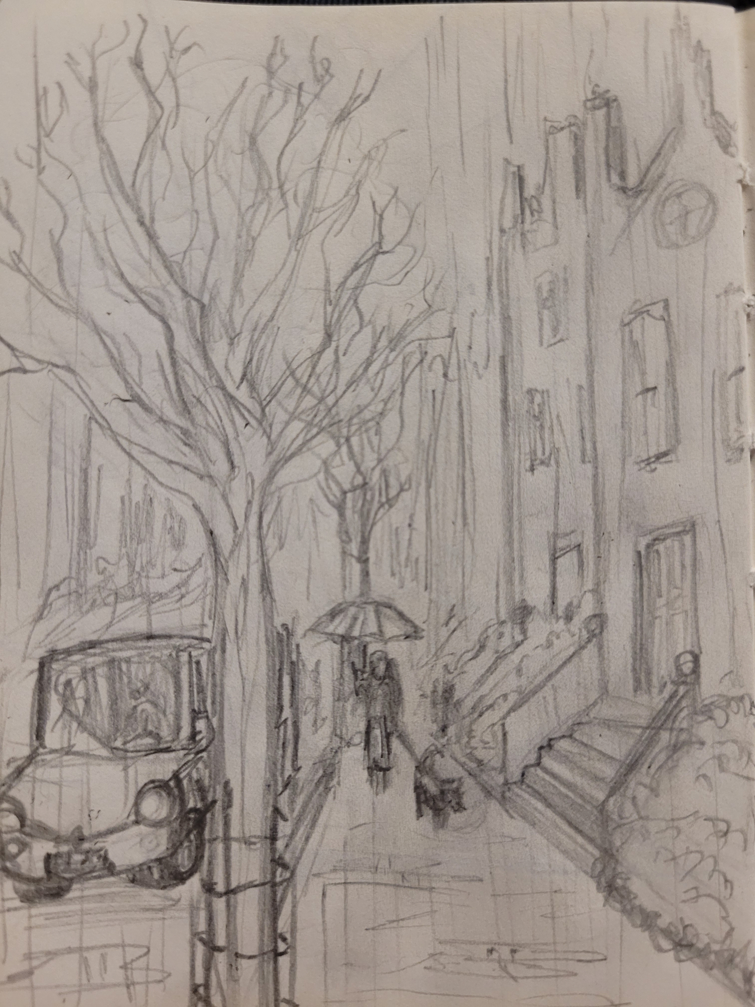 Coucou ! Après "trek" et "randonnée", on va décidément se faire tout le champ lexical de la marche 😅 Dans un mood de saison, j'ai dessiné cette scène d'une ville sous la pluie où une femme et son chien errent le long des rues 🍁 @alkecesa moi je les aime bien, ces petits escargots ! @Hatsu haha bien vu, l'idée du labyrinthe ! Pareil pour l'idée de @Haeresis et ton chevalier, mais l'un comme l'autre n'ont pas dû être simples à dessiner sous cet angle et dans la bonne perspective... Vous vous en sortez bien 😮3 points