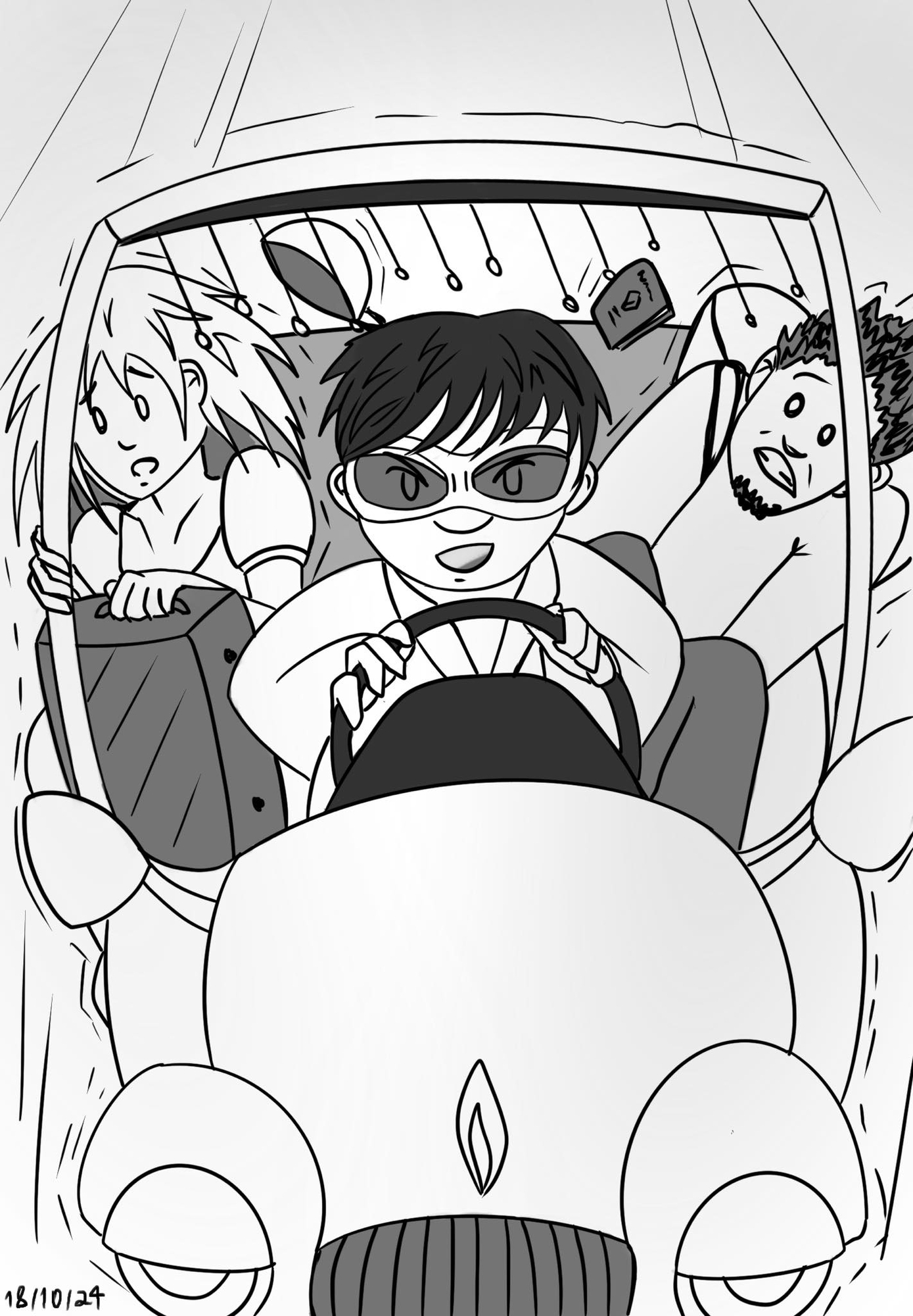 Hello again! J'enchaîne avec le dessin du jour. Je me suis bien amusée avec celui-là, l'idée m'est venue d'une expérience de tuk-tuk en Asie, où les conducteurs sont généralement en mode "fast & furious" quelles que soient les conditions urbaines ou météorologiques 😂 @Hatsu hahaha super cette idée, tu l'as bien représentée 😆 @Deny on ressent tout à fait l'ambiance du jour de passage du permis de conduire 😱 @Archange.St.Michel très cool ton dessin, la mise en volume est réussie !8 points