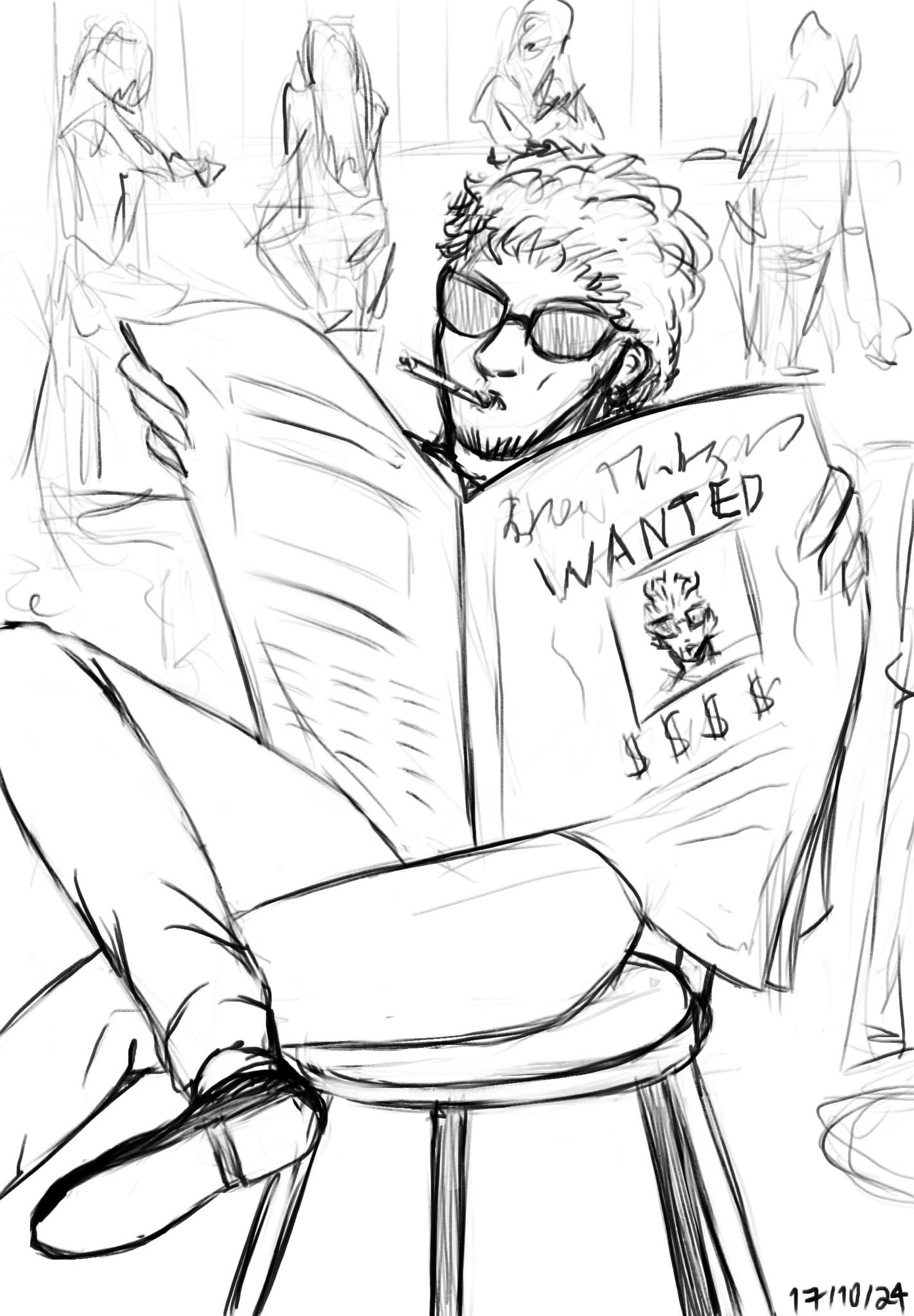 Hello ! Avec un peu de retard, j'avais terminé mon dessin tard dans la soirée hier, donc je me suis dit que je partagerais ce matin ^^ @ApostroKeheureusement que j'avais vu ton dessin dans la journée, au début j'étais partie sur une compo vraiment similaire avec un gentleman anglais (mais pas zombie) 😅 @justice8par contre désolée mais je n'avais pas vu le tien, et la position du perso ressemble pas mal, au final... On a tellement l'habitude de voir quelqu'un lire le journal avec une jambe croisée sur l'autre haha ! @evelynetaaaah j'adore ton idée, trop contente de croiser des fans de DW sur DPS 🤩3 points