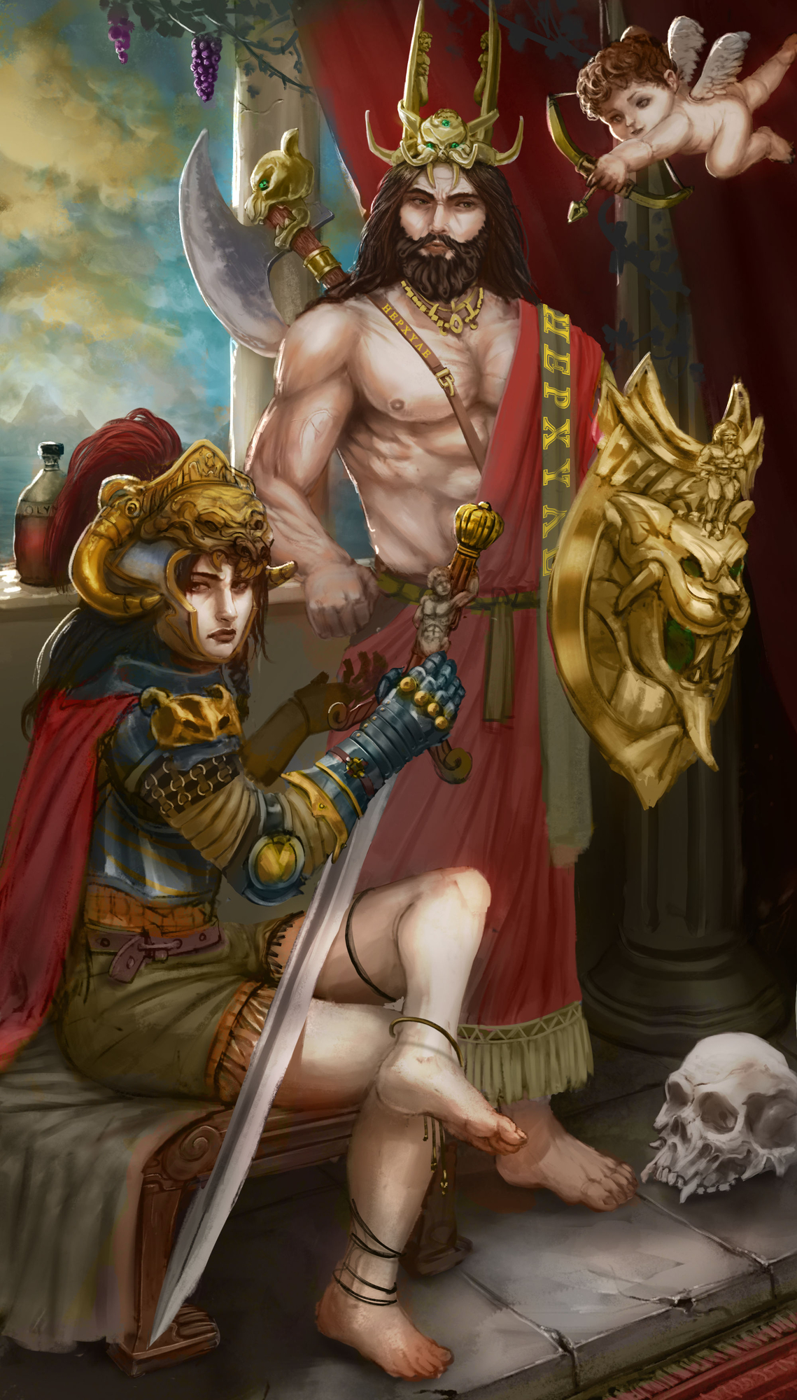salut ce n'est pas encore la version finale, mais je pense que je n'irai pas bcp plus loin, mise à part des détails... j'aurais voulu rendre bien mieux certaines parties mais voilà... on a fait ce qu'on a pu... l'Apollon a été décalé suite à un avis que j'ai recu sur discord, le positionnement est meilleur comme ca, il y a un suivi entre son regard à elle et sa position à lui... mais cela m'a obligé à travailler toute la partie qui était cachée par Apollon (que j'avais mise sous le tapis, donc...) J'ai cleané tout ce que j'ai pu, un peu partout... mais pas suffisamment à mon gout... bref.1 point