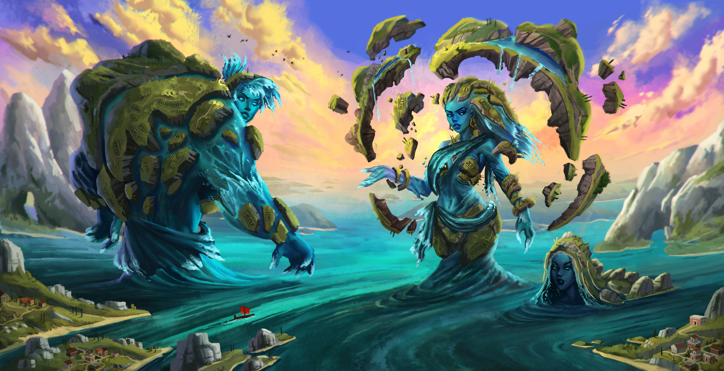 Dernière version de mon illu. Si demain je remarque encore un ou deux détails à modifier j'aurai juste le temps. Sinon je posterai dans l'aprem. Concernant le post-mortem de ce projet : - je suis revenu plusieurs fois sur certaines décisions pour la composition, ainsi que sur le design des nèsois. En ayant une meilleure structure et une plus fine idée de ce que je voulais faire, j'aurai sûrement perdu moins de temps. En soit j'avais fait des recherches, mais peut-être pas assez - les roches et l'eau c'est un enfer à faire. Faudra que j'analyse plus en détails comment ça se peint, comment gérer les edges sur ce genre de sujet. Parce que là j'ai peins dans tous les sens en essayant du mieux que je pouvais - j'aurais du faire une grille de perspective plus aboutie pour l'ensemble de l'illu, et même en utiliser dès les thumbnails de recherche. Même si j'avais le temps, j'ai voulu aller trop vite sur ce point - au moins ça m'a permis de tester plein de choses : j'ai pu expérimenter différents brushworks et me rendre compte de ce qui me plaisait et marchait le plus. J'ai pas l'habitude de décors aussi complexes, mais pour le coup ça m'a donné envie d'en faire encore plus grands et vastes. J'ai jamais trop fait de persos gigantesques non plus, mais maintenant je sais vers quoi me diriger pour en refaire. Y'a sûrement d'autres choses à dire mais pour le moment c'est ce qui me vient à l'esprit, et ce qui me semble le plus important. Spartan n'a pas menti lorsqu'il disait que ce challenge donnait un grand sentiment de progression et de dépassement de soi.1 point