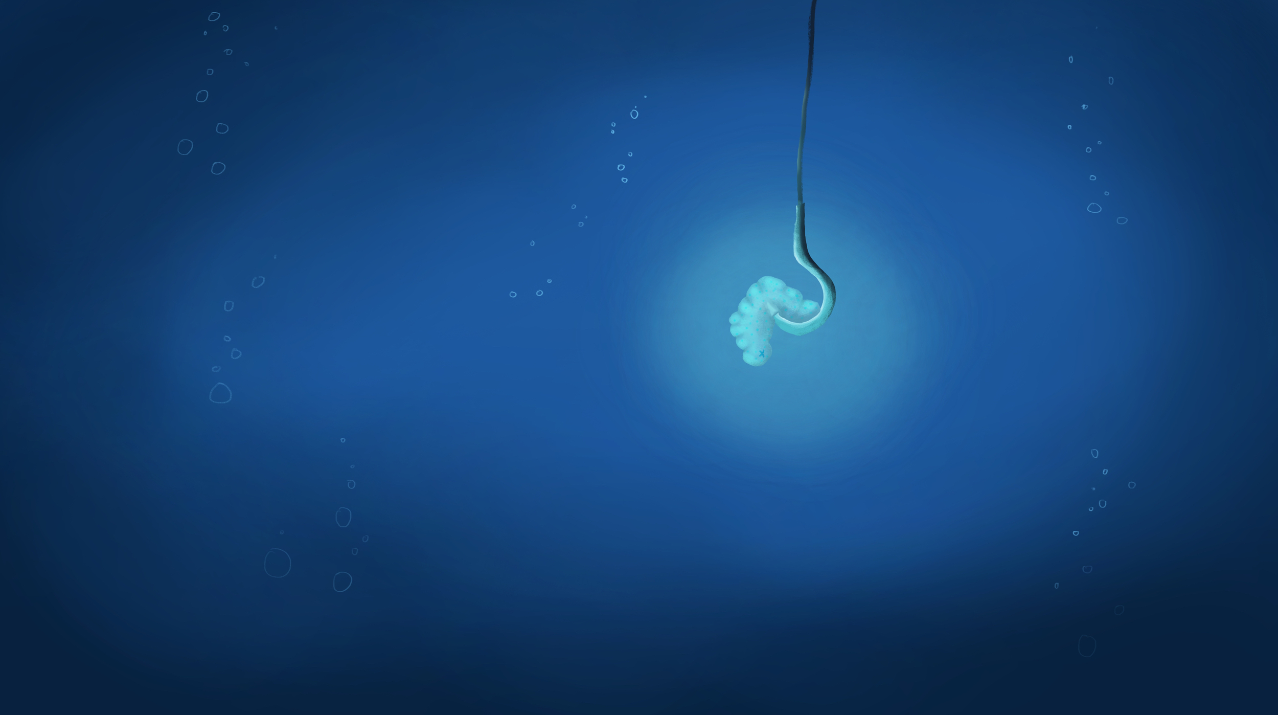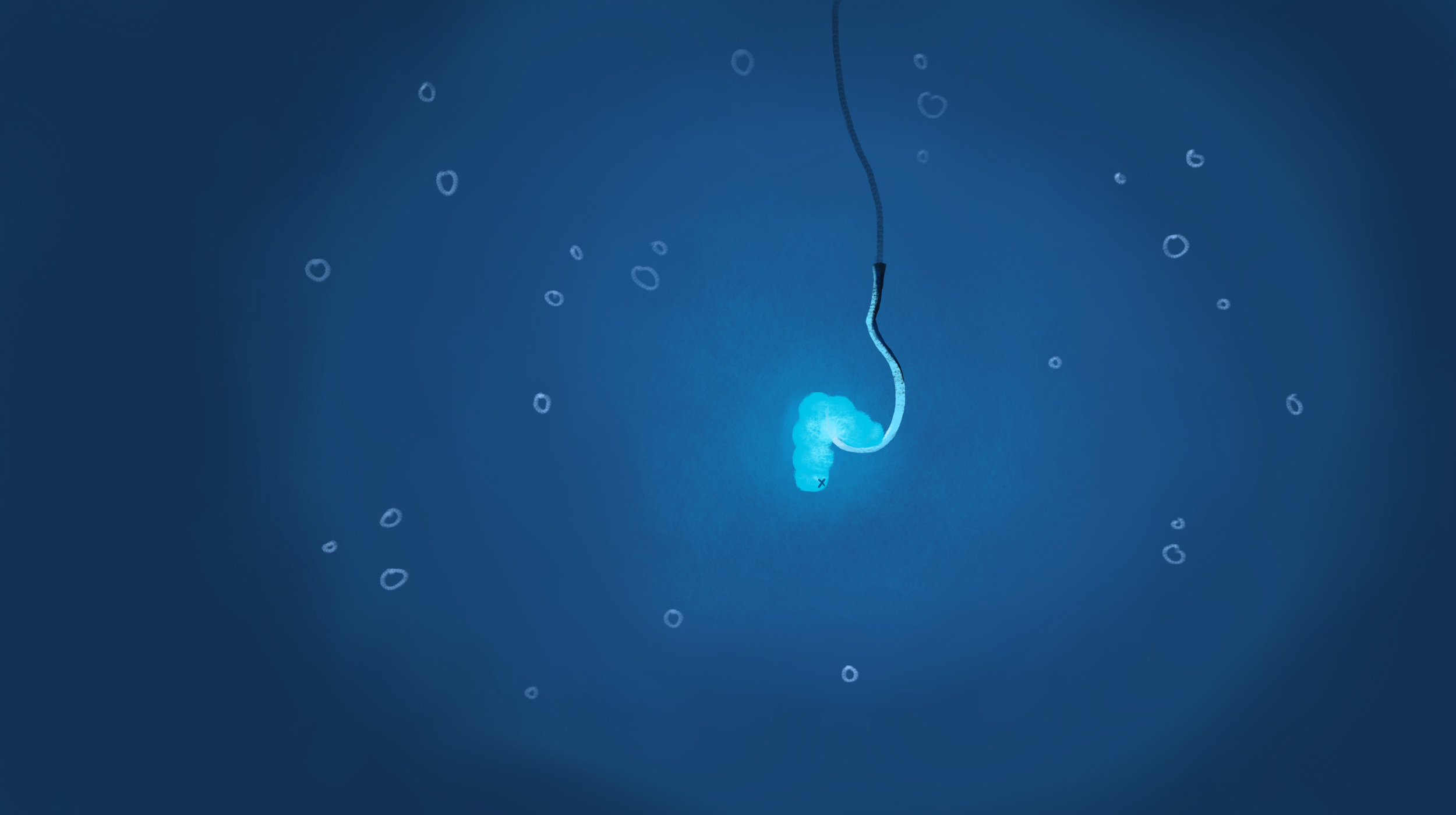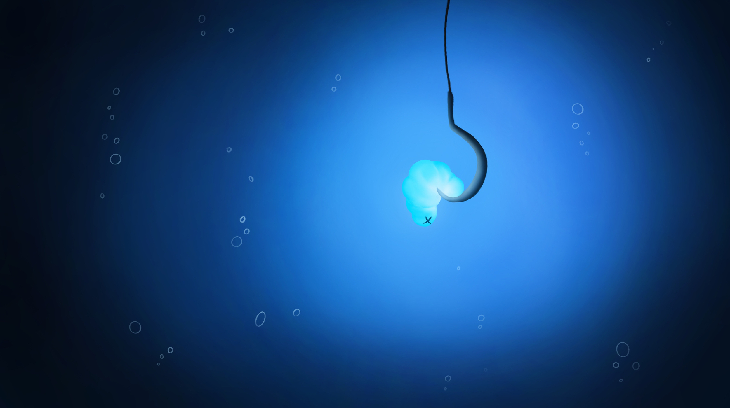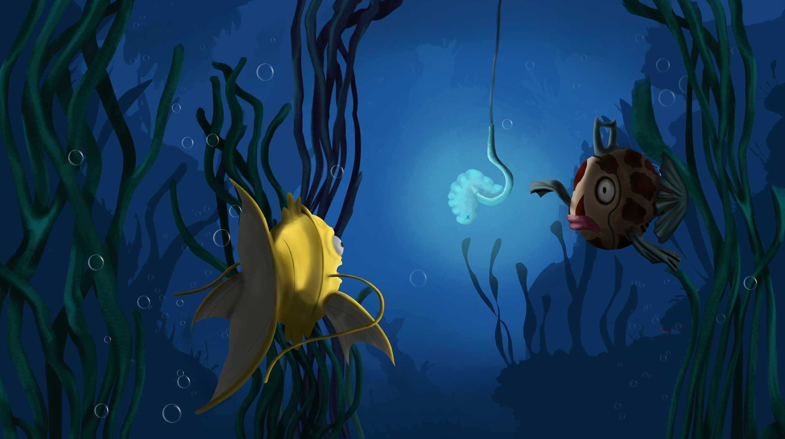 Bonswèr, je poste déjà mon avancement pour l'illustration des poissons, avec mon petit ver, que je trouve un poil clair ! Edit 1 : J'ai fais le fond de la première illustration. Je ne suis pas vraiment satisfaite, mais a voir avec le monstre et le personnage fait ! Edit 2 : Mon petit perso est fait, j'ai suivi le croquis de base de Spartan; je pense d'ailleurs m'être trop attardé sur les détails de la forme, mais la je commence à être satisfaite !1 point