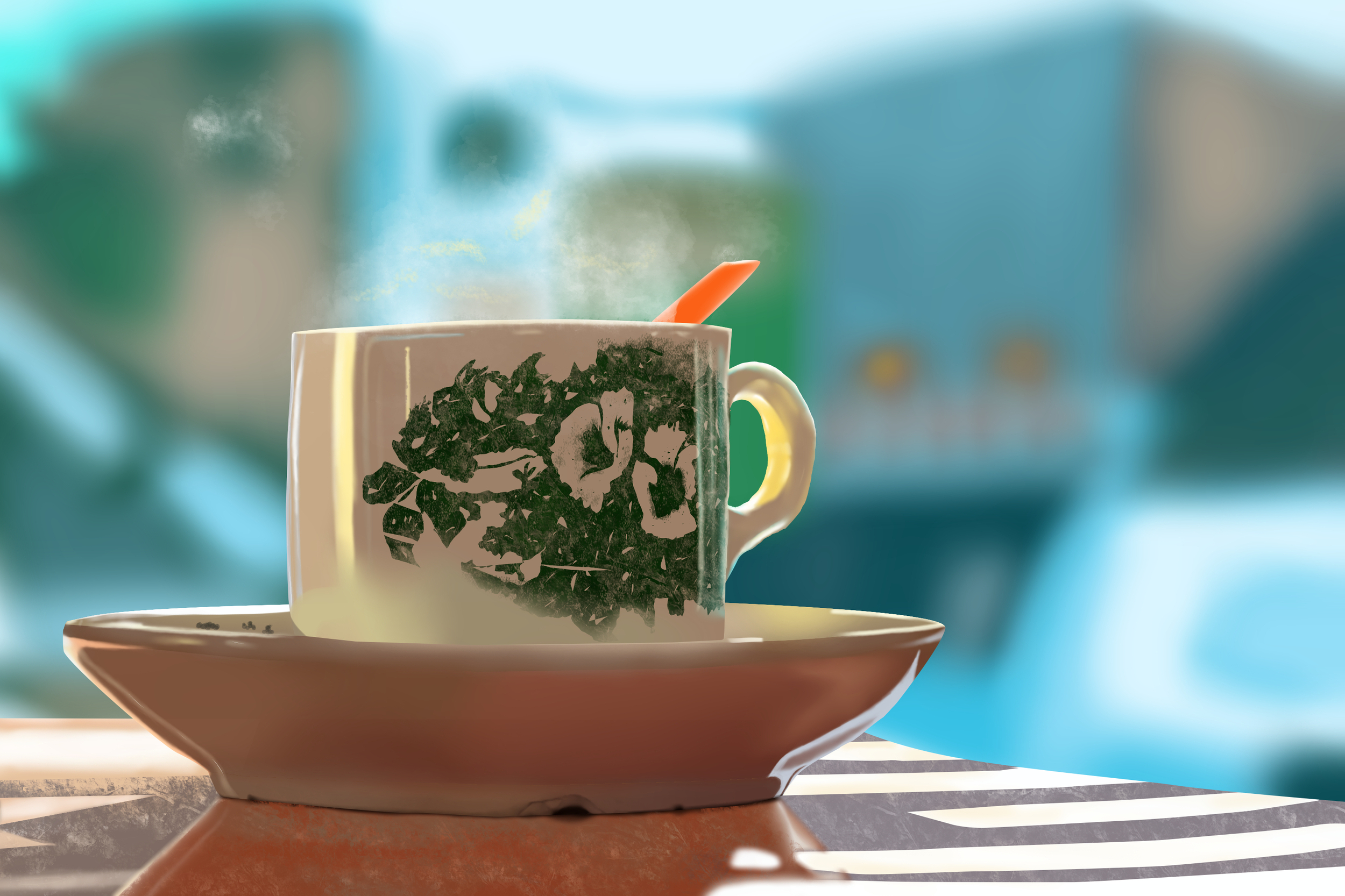 Bonjour ! Je suis de retour après un an ! beaucoup de changements dans ma vie ont provoqués cette pause, mais ça y est, je retrouve une certaine routine qui me permet de reprendre mon stylet ! Je partage donc l'exercice 4, la tasse ! J'y ai passé une bonne 30aine d'heure, elle est loin d'être parfaite, mais elle est là ! Je n'ai pas réussi à faire la fumée de la même dorme que sur la photo de référence donc j'ai improvisé !1 point