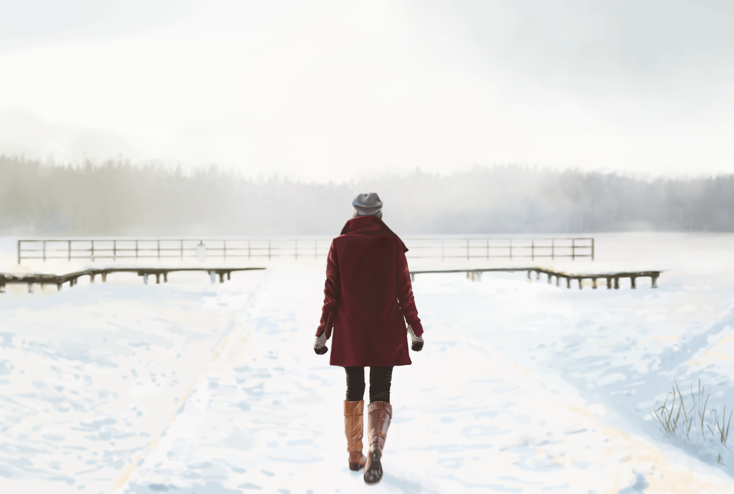 Hello ! Me voilà de retour avec l'exercice 2.5 ! Bien que je ne sois pas tout à fait satisfaite de la forêt/vallée (que j'ai fini par faire au lasso et au brush texturé), des barrières, de la neige (que j'ai fini par faire en grande partie avec un brush texturé après des heures d'essai au pinceau sans grandes réussites) et de cette satanée botte droite (HA, cette satanée botte droite), je reste quand même très satisfaite et assez fière de ce rendu final que je ne pensais pas réussir à atteindre ! Si vous avez des remarques et suggestions pour l'améliorer n'hésitez pas, je suis preneuse !1 point