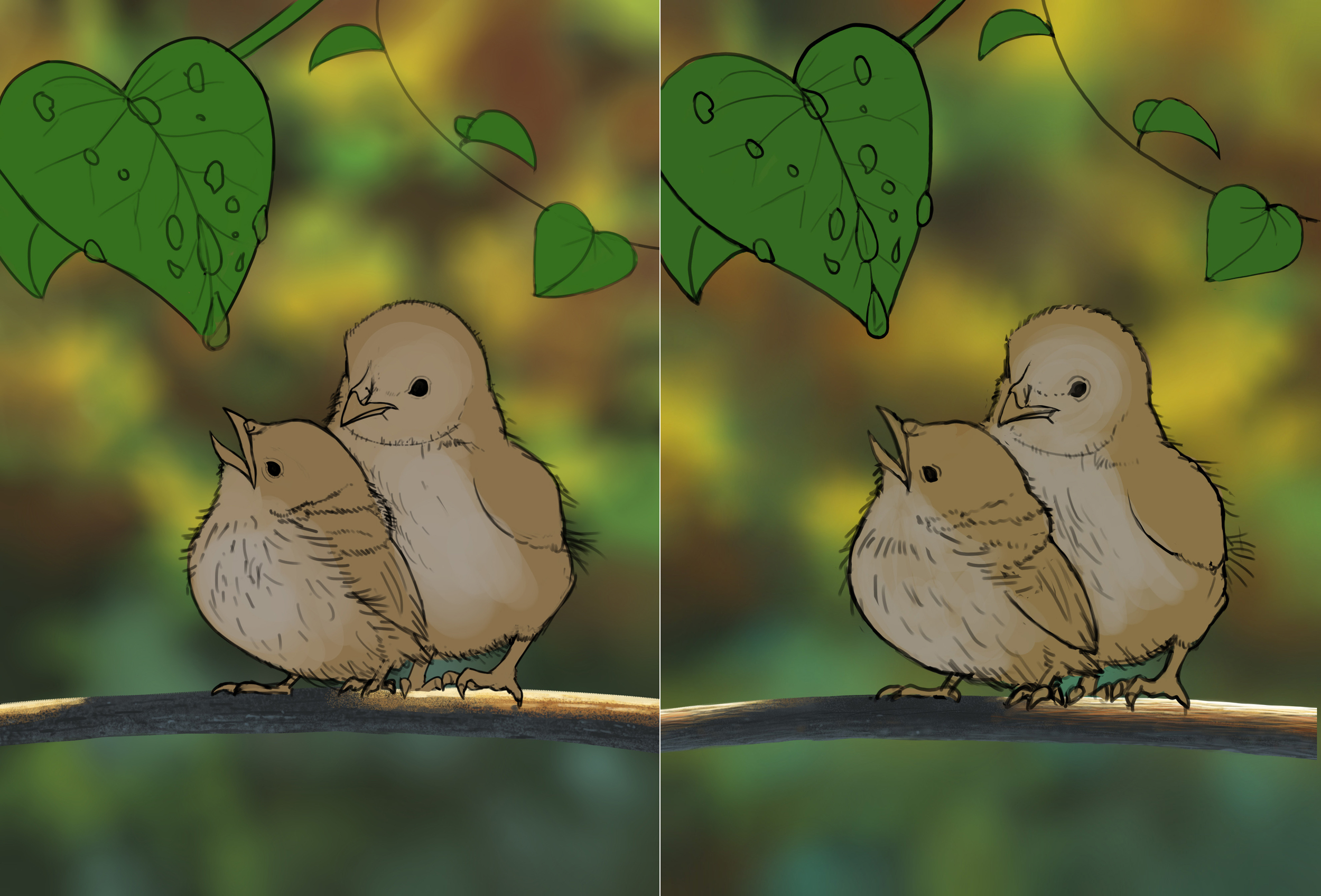 Salut ! Après presque un mois de pause le temps de produire deux dessins pour le challenge 18, voici le fruit de mon travail sur les oisillons... A gauche le modèle, à droite ma production. Le trait de mon croquis est peut-être un peu trop noir et/ou épais. Je m'en suis rendu compte seulement à la fin lorsque j'ai fait le doc de synthèse. Bon, je ne pense pas que ce soit réellement un problème à priori...1 point