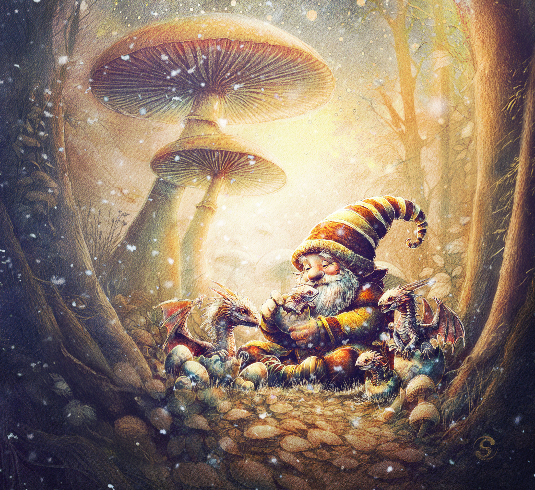 Voilà le moment de se découvrir. Je suis ton santa @Kyam et comme tu aimes les dragons, j'ai essayé de mélanger ceux-ci avec mon univers (ça n'a pas été difficile car j'en fais souvent 😜 ) J'espère que cette illustration te plaira ! Prends soin de toi et tes proches comme ce lutin et passe de superbes fêtes. Idem pour tous !1 point