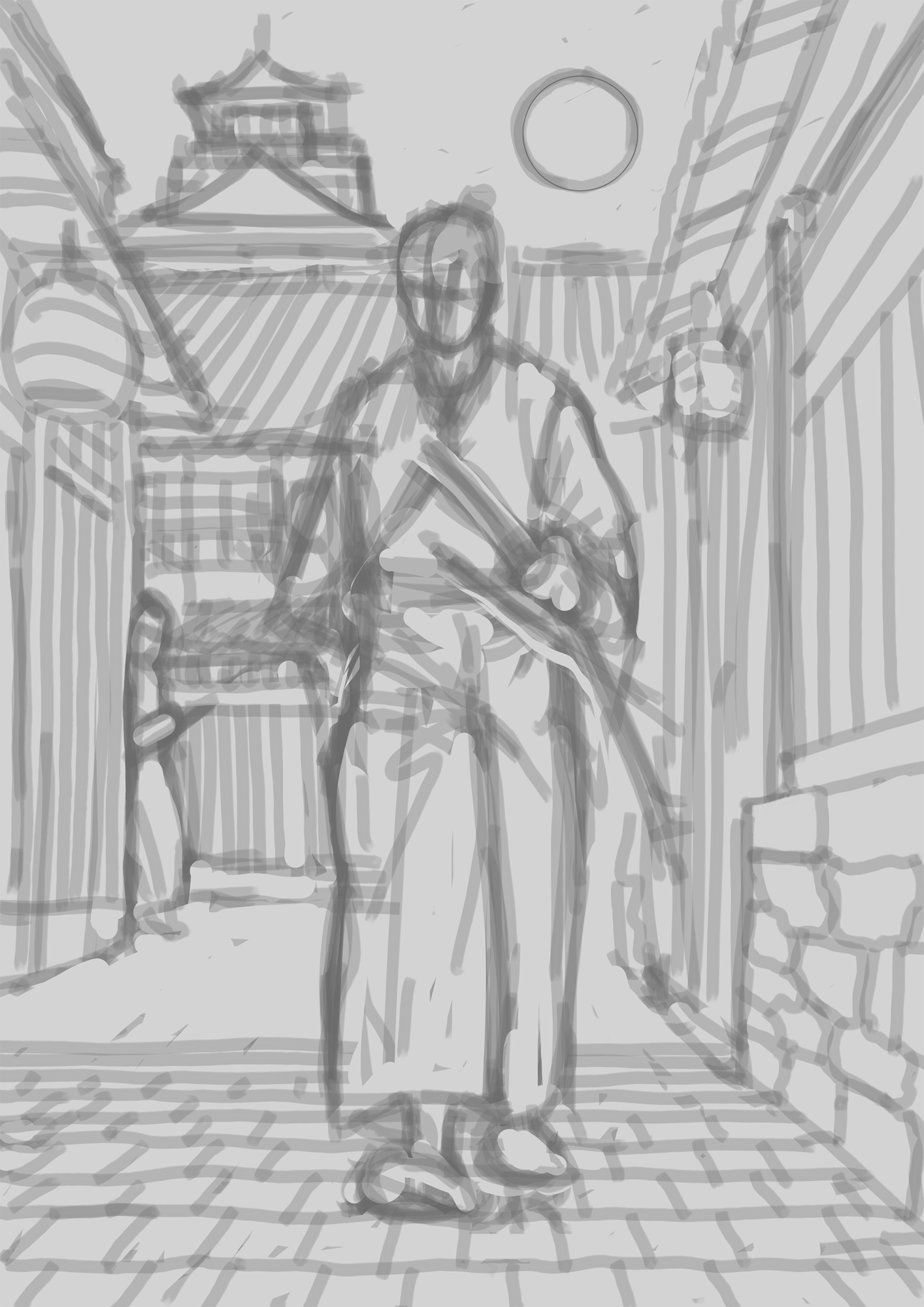 @ShozArt j'ai essayé de retravailler mon croquis à la gomme. Donc forcément, c'est moins bien que si les traits avaient été suggérés dès le départ. J'ai surtout insisté sur les 3ème et 4ème plan. Est-ce que dans l'idée c'est ça ou je fais fausse route ? Je pense que mon problème vient que je dissocie mes calques décors de mes personnages et que je les travaille sans faire apparaître les personnages, du coup il n'y a pas "intégration" des éléments de la composition mais réalisation de compositions indépendantes entraînant une surcharge... Je me prends la tête ou est-ce une explication qui te paraît plausible ? Merci par avance...1 point