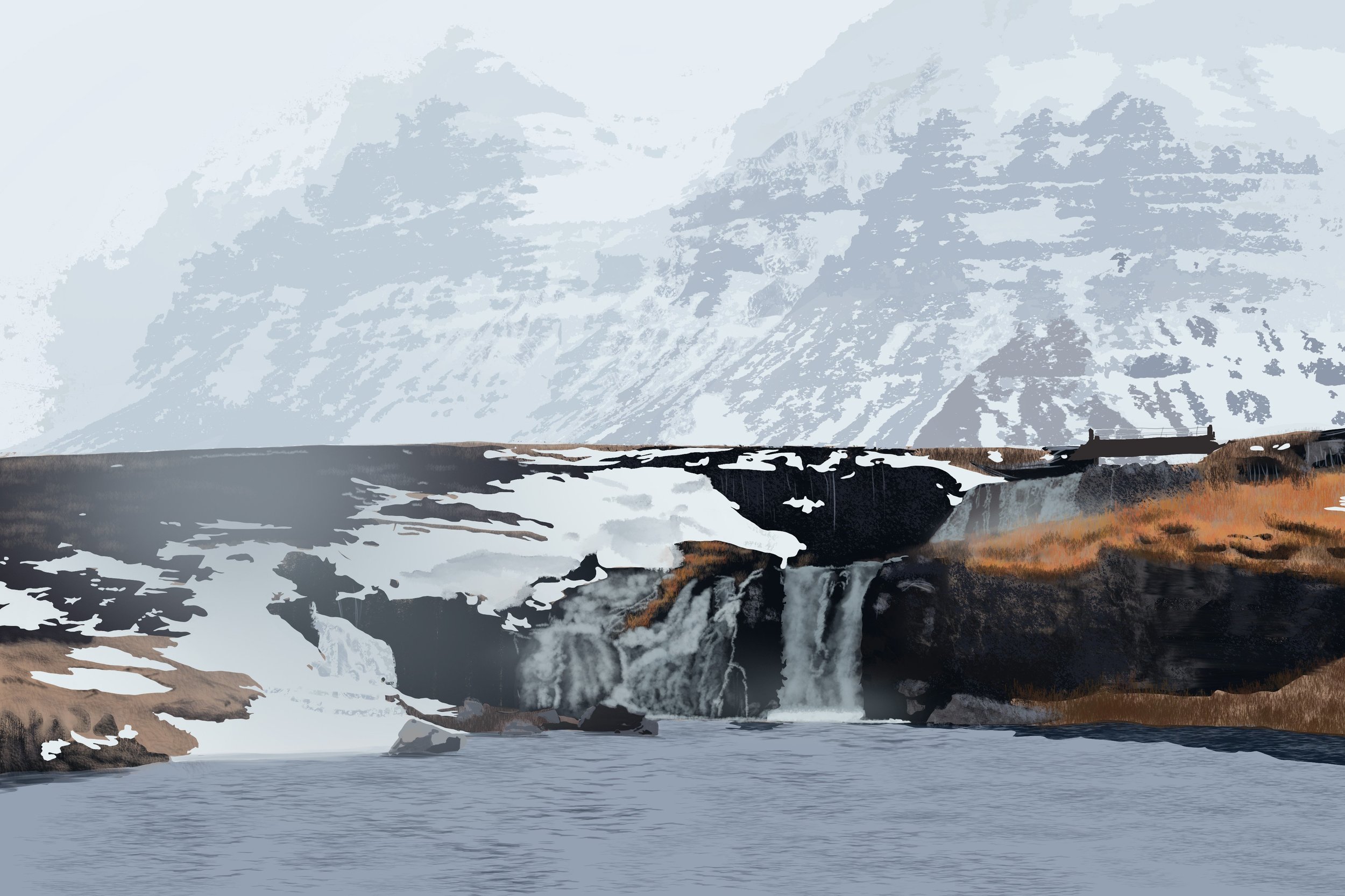 Hello ! - Pour la montagne : les cascades sont toujours trop blanches, regarde bien l'image, elles sont plus foncées et un peu bleutées. C'est une lumière overcast (sans soleil), donc qui vient du ciel, seules les faces de dessus seront éclairées par le ciel, donc l'eau qui coule à la verticale sera dans l'ombre, seul le dessus sera éclairé c'est pour ça 🙂 Tu peux améliorer aussi la shape de la montagne au fond, tu as trop de textures un peu partout dessus et tu perds les shapes. Essaie de juste tracer les formes justes avec un lasso et de remplir tout ça avec de la couleur et un tout petit peu de texture et ça rendra mieux. - Pour le monstre, le dégradé ombre lumière est bien mieux même s'il pourrait être encore plus doux et progressif. - Pour la fleur, c'est mieux au niveau volumes, mais les ombres sur les bords des pétales pourraient être plus froides/bleutées comme sur la photo et un peu plus présentes pou apporter un peu de contraste avec la lumière et ajouter plus de volume à ces pétales. - Le poivron est nickel, bien joué ! 🙂 De manière globale, attention à ne pas mettre trop de textures et à bien mettre ça tout à la fin, une fois que les shapes et les volumes sont bien marqués. Le poivron est mieux traité à ce niveau là.1 point