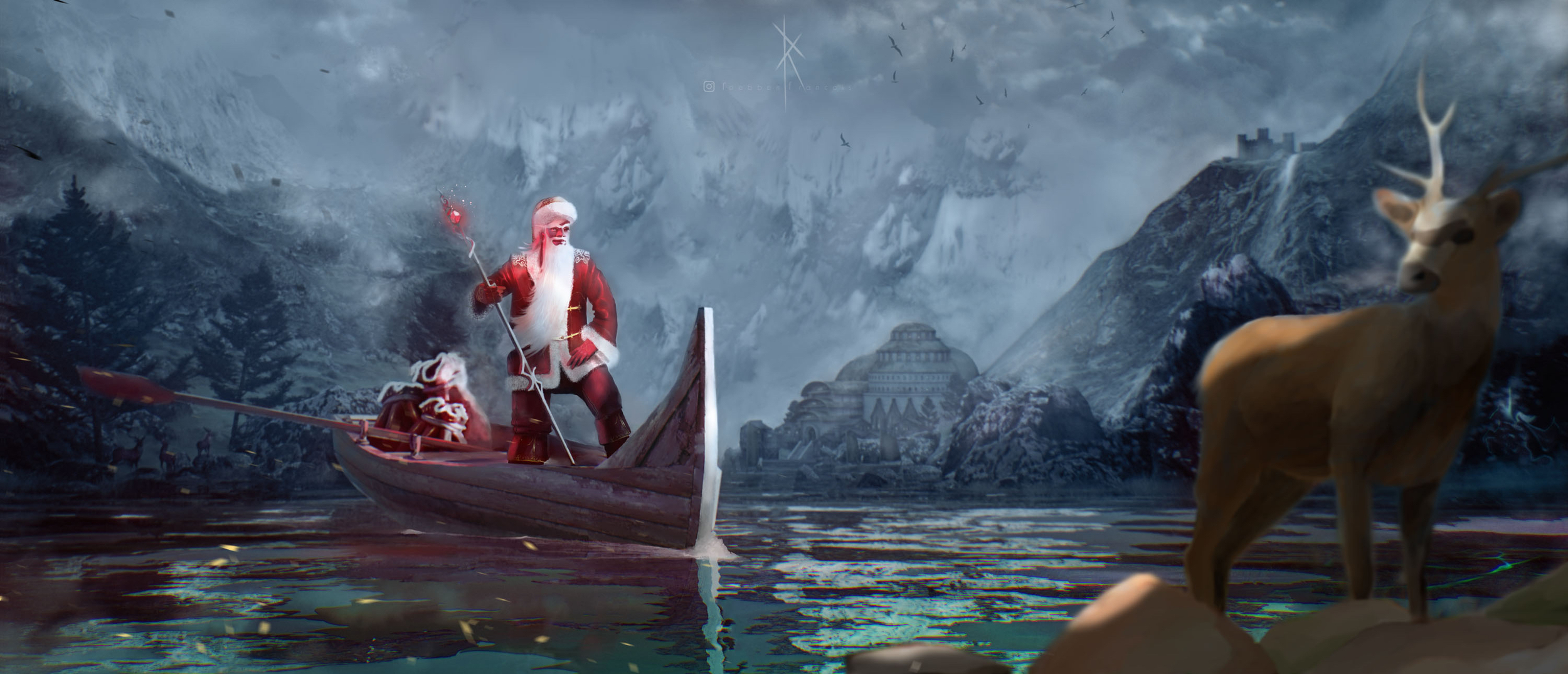 Ce petit cadeau est pour Toi @sorya! Je suis donc ton secret santa. J ai essayé de créer une ambiance d aventure mystérieuse pour notre santa klaus . Avec une grosse référence à un célèbre jeux vidéo . Arrivera t il à trouver les rennes dont il a besoin ainsi que son célèbre traîneau ? Il n est pas au bout de ses peines même avec ses pouvoirs magiques de père Noël . J espère que cela te plaira @sorya ! Je voulais aussi faire quelque chose de difficile pour moi,c est a dire un bel environnement complexe . J ai fait de mon mieux ! Je te souhaite de très belles fêtes à toi et tes proches !!1 point