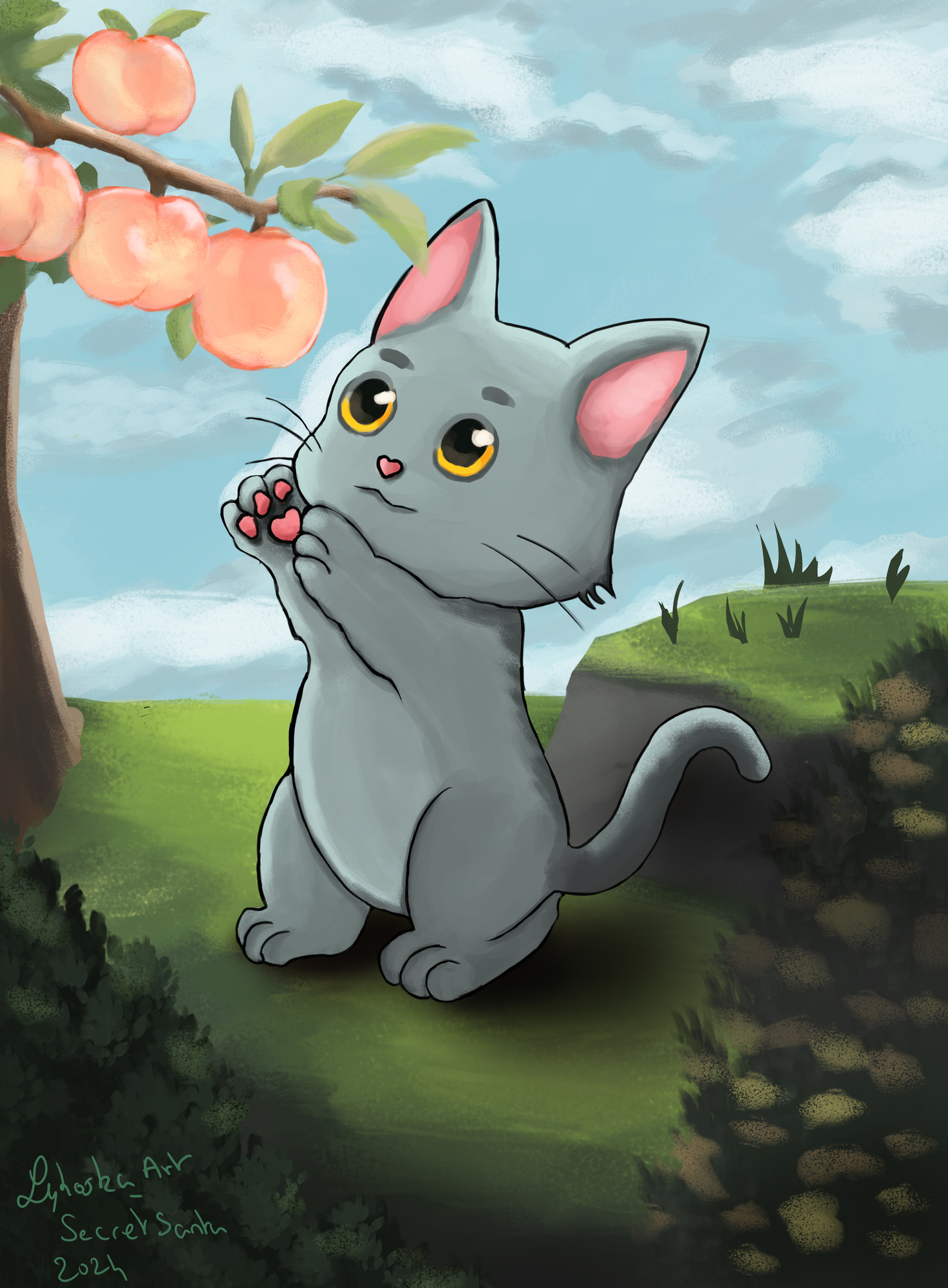 @marlou_tre Joyeux Noël Marlou_tre , et ui j'étais ta maman nouel 😆 pour être tout à fait transparente, j'ai eu beaucoup , beaucoup de stress au départ ne sachant pas du tout vers quoi me diriger je n'ai commencer ce digital que le 15 décembre car je me creusais les méninges pour faire un truc avec tout les éléments que tu souhaitais au final j'ai fait cette petite chose toute poilu que tout le monde aime je te laisse découvrir sa petite histoire car oui il y'en a toujours une 🥰 Il était une fois , un petit chaton tout mignon qui avait pour mission de rapporter dans son village de meow-meow ville une graine de vie , provenant d'un arbre aux fruits savoureux et juteux . Ce petit galoppin plutôt mâlin écouta son instinct et suiva sa proie. Arriver sur une colinne il trouva l'objet de sa mission éblouit par sa beauté, il resta un moment subjugé . Il tenta d'en attraper un, mais il était trop petit et n'y parvena point. Mais comme un miracle de Noël , le vent se mis a souffler souffler et les nuages dansaient dans le ciel bleu, c'est alors qu'un fruit se détacha d'une branche et se laissa tomber dans les patounes du petit chat au combien comblé de rapporter dans son village le fruit de son dur labeur qui plus tard fût récompenser et acclammé par tout meow-meow ville.1 point