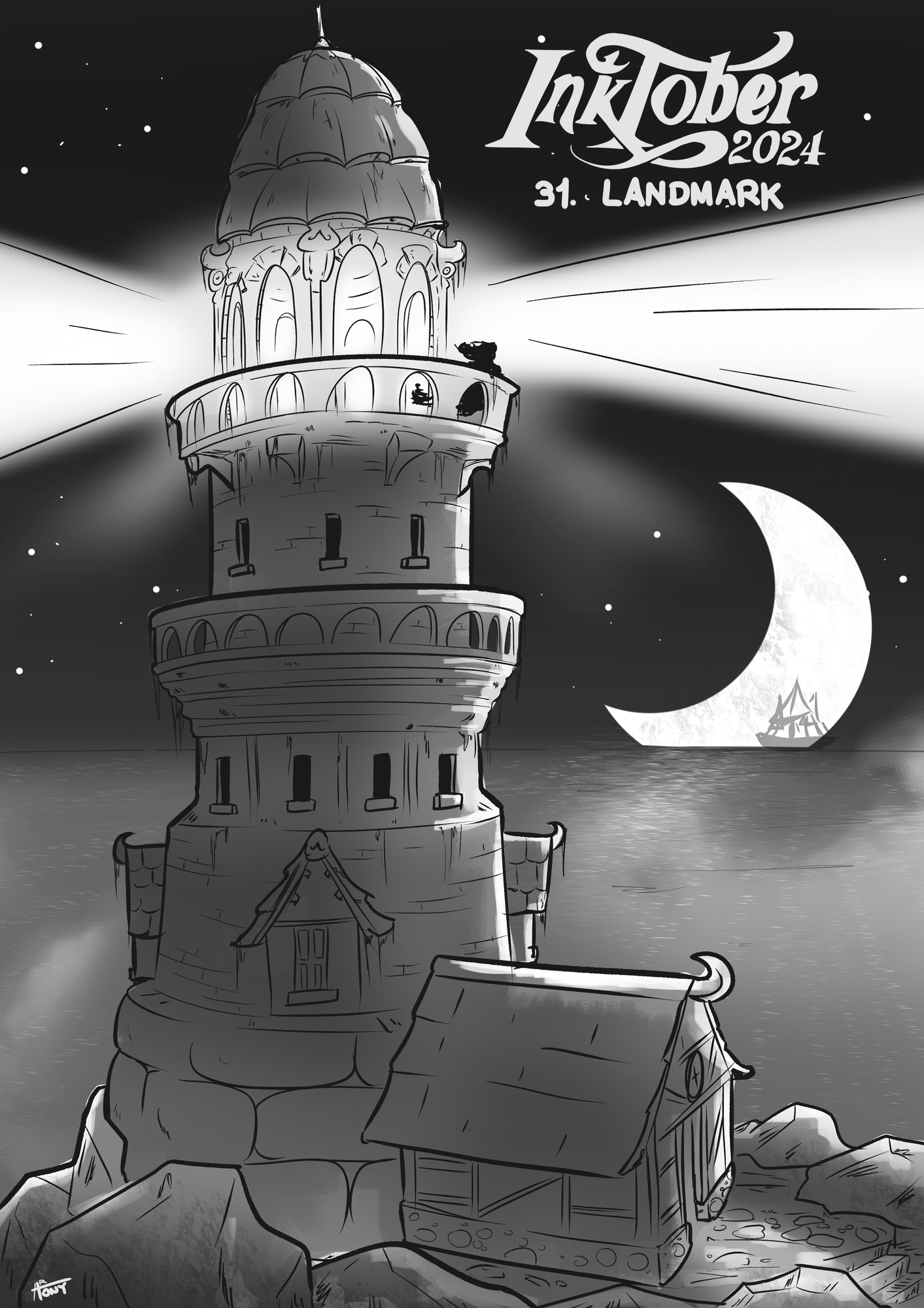 @Chaz Merci pour l’organisation tout le long du mois 😁 @Arno Vraiment génial ton rendu final 🤩 @ApostroKe Tu fini en beauté, j’ai adorer découvrir les ambiance macabre que tu insuffle à tes dessins. @pauline96 Bien trouvé haha @Archange.St.Michel Tu fini en beauté ! Quel pose et super rendu ! Je suis parti sur un phare pour clôturer cette Inktober qui aura était mon premier. Ça a était super de partager nos travaux ensemble tout le long du mois. Vous avez tous gérer !1 point