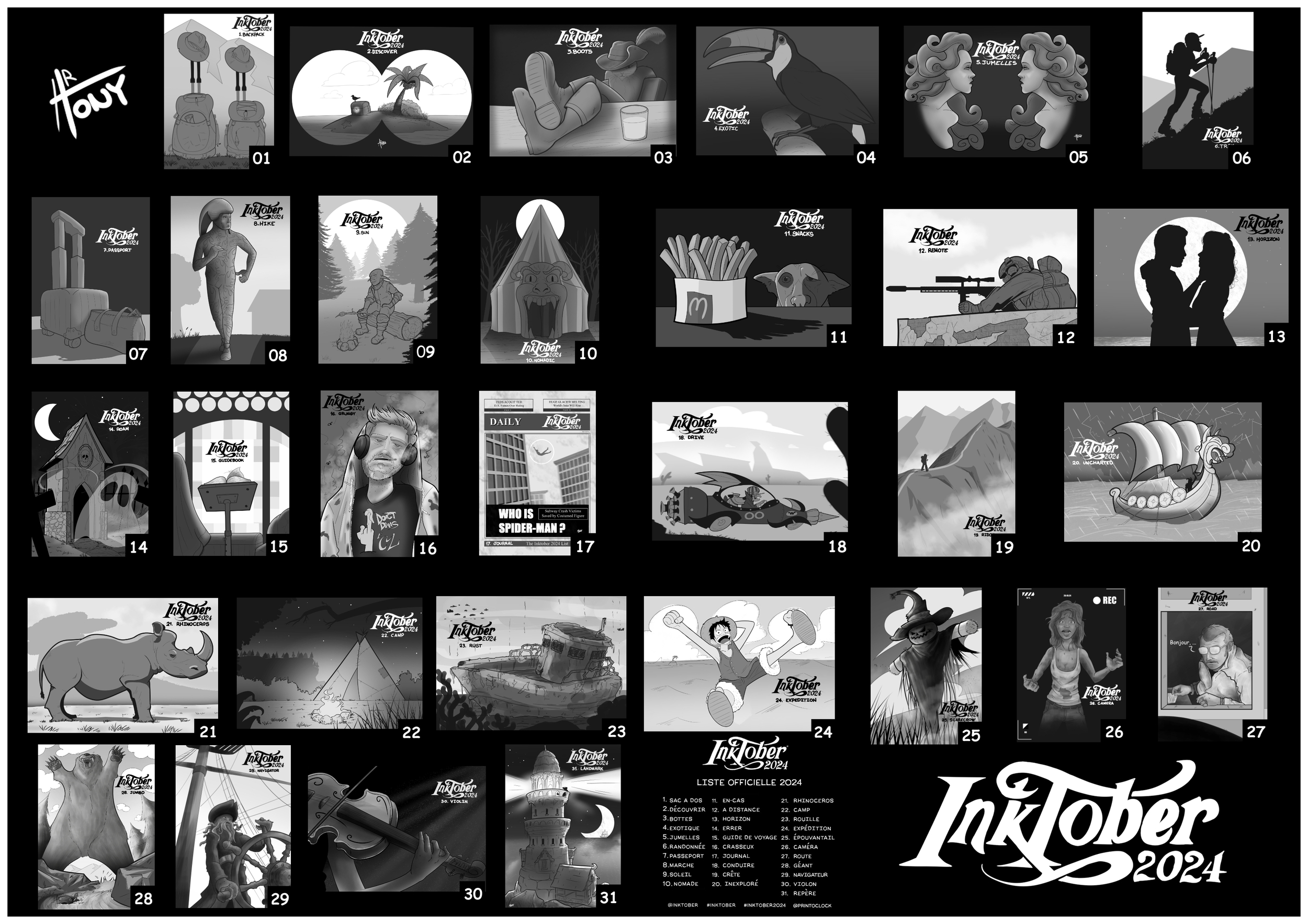 Salut à tous ! Voilà le dernier mot, pas simple cet Inktober je trouve. Mais en même temps ça fait peut-être plus travailler ... @artony : Bravo pour tes DP toujours très bien trouvé ! @ApostroKe : Bel Inktober pour toi. Tu as vraiment un style reconnaissable du premier coup d'oeil @Arno : Superbe fresque finale !!! Bravo à toi @Archange.St.Michel toujours de bel réalisation aussi !! Bravo à tout les autres c'était cool de voir vos idées et réalisations.1 point