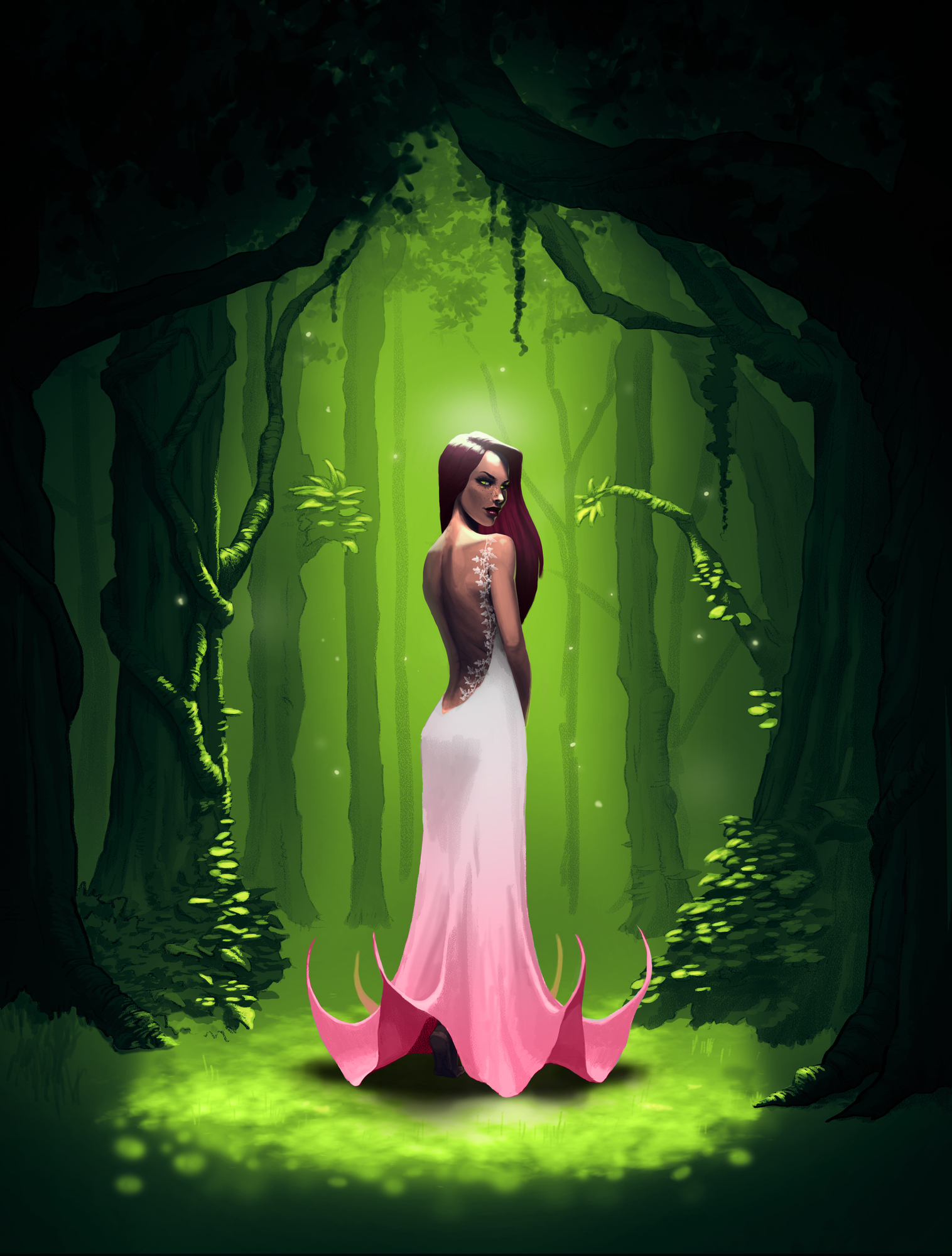 Bonjour, Après des années à hésiter à acheter les cours du Programme Indispensable, j'ai finalement craqué en me les offrant pour Noël ! Puis j'ai passé quelques jours à réaliser ce digital painting qui me trottait en tête depuis quelques temps en guise de painting de référence de mon niveau actuel. Je vois déjà plein de choses qui ne vont pas et des tas de détails sur lesquels je pourrais passer des heures et des heures, mais j'ai envie de commencer enfin ces cours alors je m'arrête là pour l'instant. Tout le principe est que je puisse l'améliorer à la fin après tout... 😉 Pour le perso je me suis inspiré de Poison Ivy, avec une robe rappelant la fleur de Datura, belle mais contenant de la scopolamine, une substance toxique parfois utilisée en Amérique du Sud pour détrousser les gens.1 point