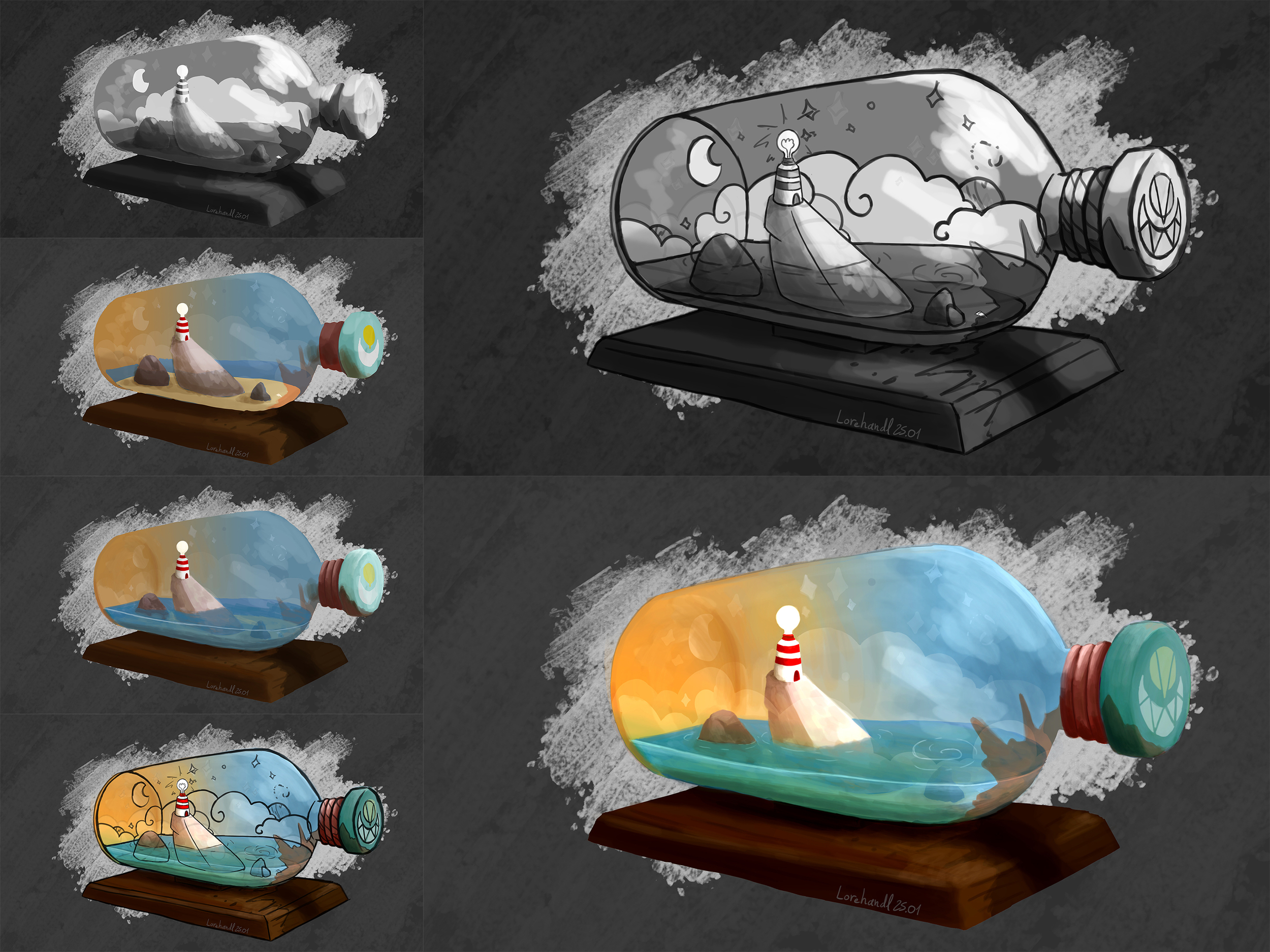 Hello ! Voici mon exercice du chapitre 0 qui sert de témoin de mon niveau en début de formation. J'ai déjà un peu d'expérience dessin sur Photoshop ainsi qu'une formation en Game Art 3D, cependant je veux aller plus loin en 2D (et texturing par extension) mais sans griller d'étapes à l'apprentissage. J'arrive à faire des sketchs satisfaisants pour moi, mais le rendering ne suit pas (aussi je voulais faire un props/objet, plus qu'un personnage ou un décor). Il y a quelques étapes afin de donner une idée de la façon dont j'ai procédé. Entre les recherches (moodboard + sketchs) et le painting (aplats, rendering), j'en suis à ~10h de travail. Belle journée à qui passe par ici !1 point