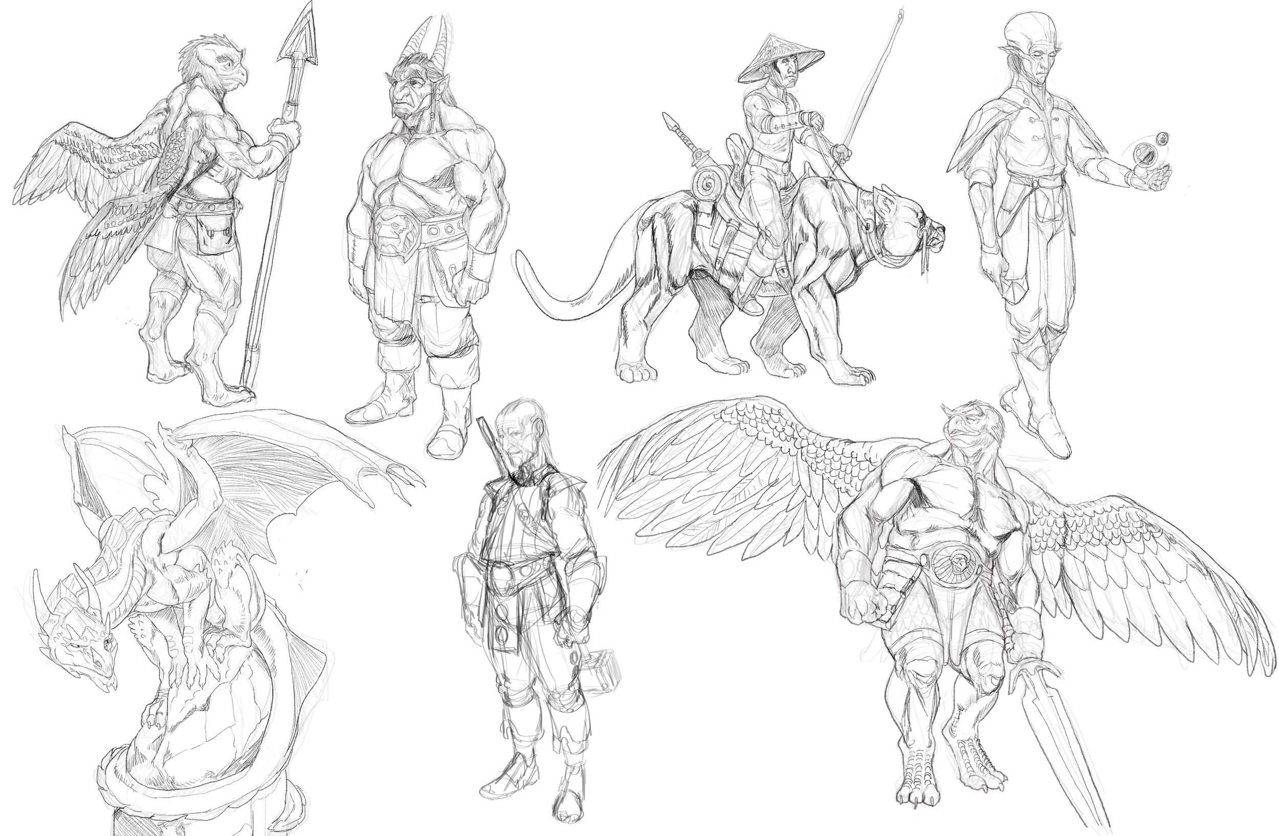 Bonjour tout le monde ! Whoah j'adore l'exercice, super pour commencer l'année et pour s'entraîner. Petite question : est-ce que c'est un perso par semaine ou autant qu'on veut par semaine ? Du coup pour les sélections, les voix des dés sont impénétrables : Punk Animal Tail/Wings Satyr Post-apocalyptic Motif : Interwoven (= entrelacé si j'ai bien compris 😅) Ancient Empires Female Comme je vais mélanger le genre post-apo à l'époque de l'Ancien Empire 😆 ?? Mais pour le reste je suis content du mélange 😁 Et bon courage à tous aussi 😄 Mise à jour du message avec le travail sur ce premier personnage. Comme j'avais plusieurs idées, j'ai voulu tester plusieurs trucs pour coller un max à la sélection. Je me lance le challenge de faire une sélection par semaine.2 points