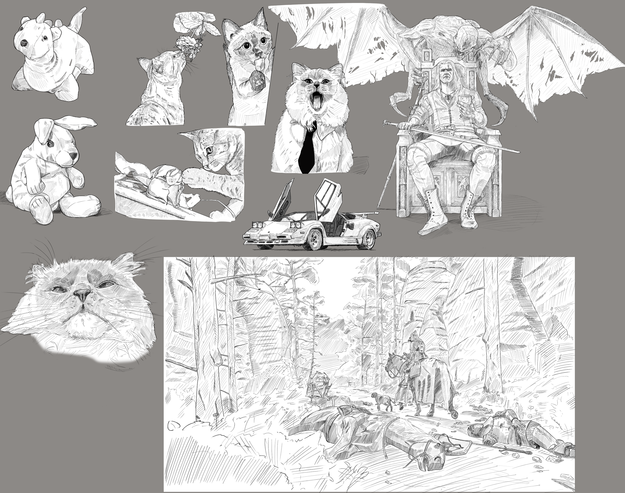 Je comprends, et en soi rien ne t'empêche de pousser une image à fond ! Juste que travailler ton croquis va te permettre d'être efficace quand tu feras des dessins pour toi qui seront pas d'après photo. Ca permet de dégrossir les choses, maitriser tes proportions, ta perspective, etc... Ca ne t'empêche pas d'avoir croquis bien travaillés comme ça : Après je t'impose rien évidemment, juste attention à pas passer trop de temps sur des croquis ^^1 point