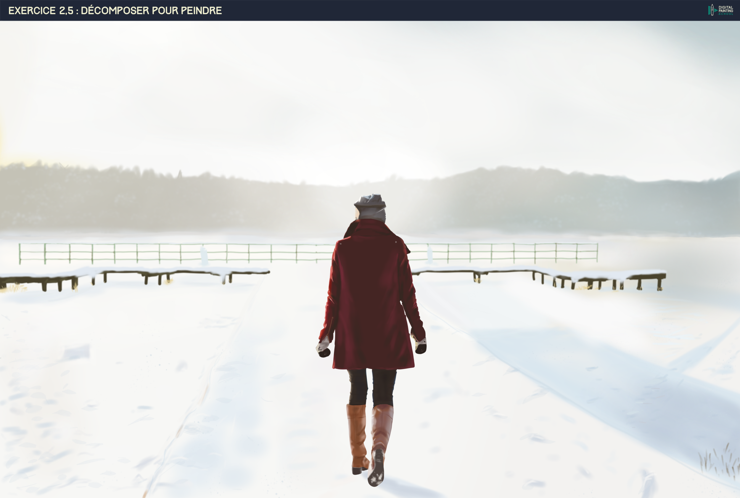 Merci pour le retour 🙂 J'ai continué avec l'exercice 2,5 après quelques jours de repos forcé 🤒 Voici le travail et cette fois-ci j'ai essayé de respecter les proportions (le croquis fourni aide plus que bien 😆 Je n'ai pas trop pris de temps pour la neige, je ne savais pas comment m'y prendre pour que cela ressemble à de la neige ⛄2 points