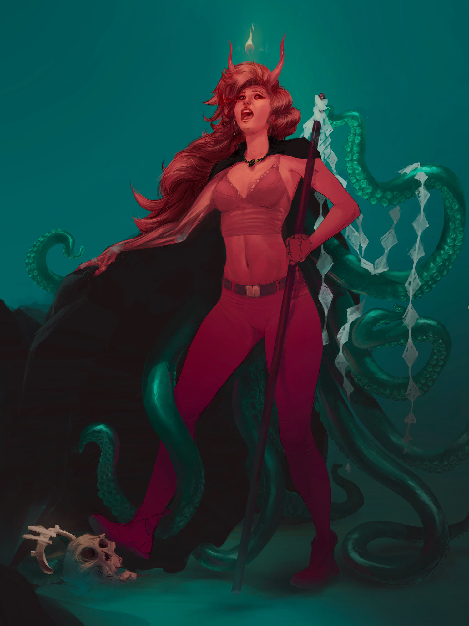Bonjour tout le monde ! Semaine 4, dernières sélections et très drôle à faire : Class: Merchant Species: Minotaur Genre : Horror Pattern : Snake Time : Victorian Gender : Female Distinctive elements : Shadowiness Ici je voulais garder la même activité de marchand en gardant le petit côté malsain aux différents altérations : Vendeuse de visage d'humain, garantie sans chirurgie ! Le visage s'incrustera sur le votre, sans aucune trace que c'est un masque. Veuillez cependant consommer une potion anti-rejet une fois par semaine pour éviter les effets secondaires. Bon appétit. Ce mois de janvier était très très cool pour s'entraîner au croquis et au rendu, même si pour ce dernier, j'ai voulu tester une autre technique pour enlever les traits.1 point