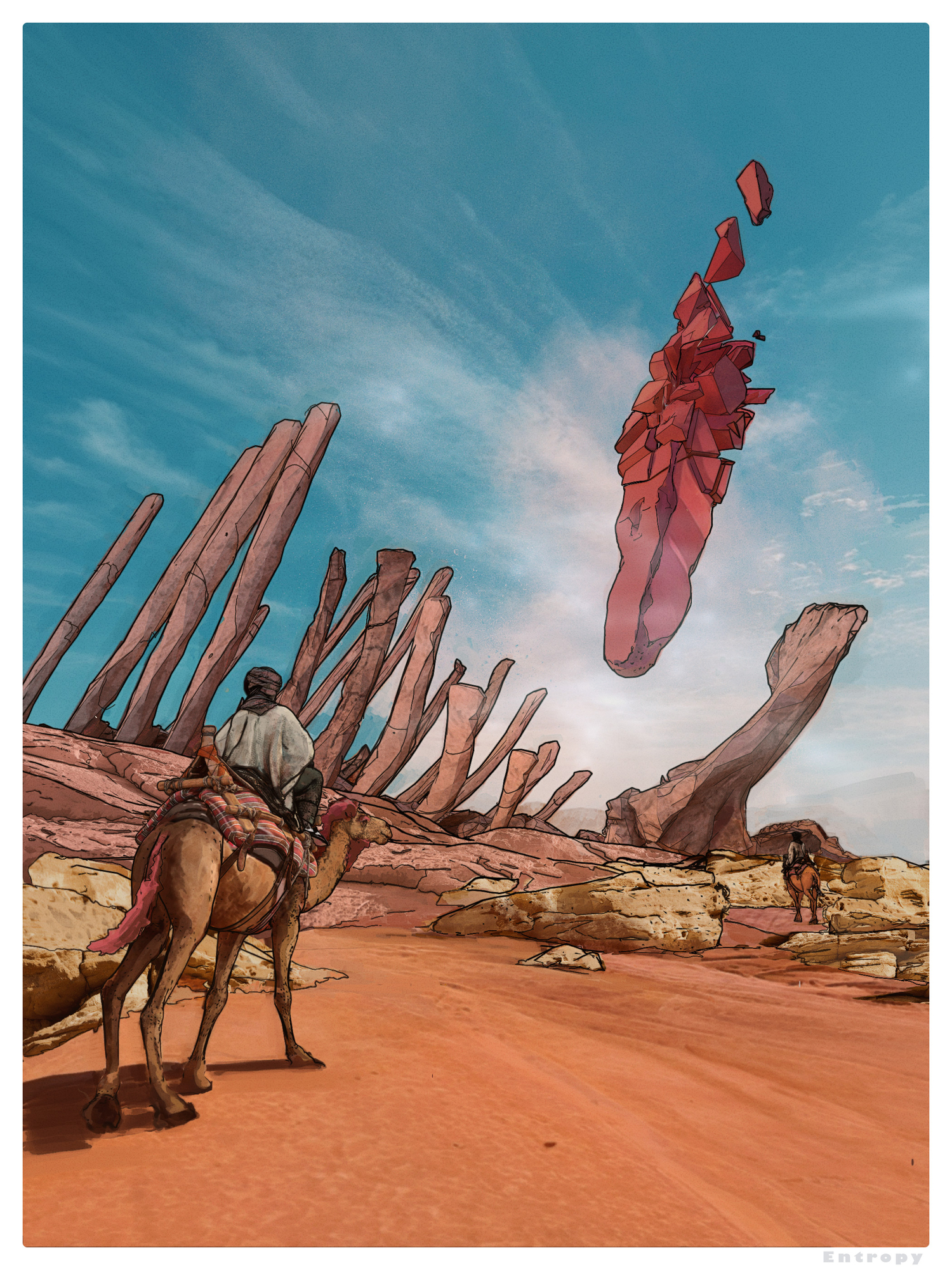 Je me suis dit depuis un moment que je devrais vraiment essayer de trouver le temps pour ces exos réguliers, et puis... euh... Kamoulox ? Vu que les personnages sont ma bébête noire, c'est l'occasion d'en faire enfin. J'ai donc fait un tirage de dés à l'ancienne pour avoir un thème totalement random... J'ai donc tiré : - Bounty Hunter / Hair color / Troll / Surreal/Dream / Cubic / Post-Apocalyptic / Male - Voici le rapide concept que j'ai tenté avec les crôutons et la soupe, sans parvenir à faire un choix définitif pour l'instant 🤣 (Votre avis sur la question m'intéresse, si jamais 👉) J'essaierai de trouver le temps d'en faire une version finale complète. (On cite pas maître Yoda, svp, 😅) Merci pour les exos, c'est toujours aussi inspirant et dépaysant, très utile pour toujours trouver de nouveau workflow ! 💖1 point