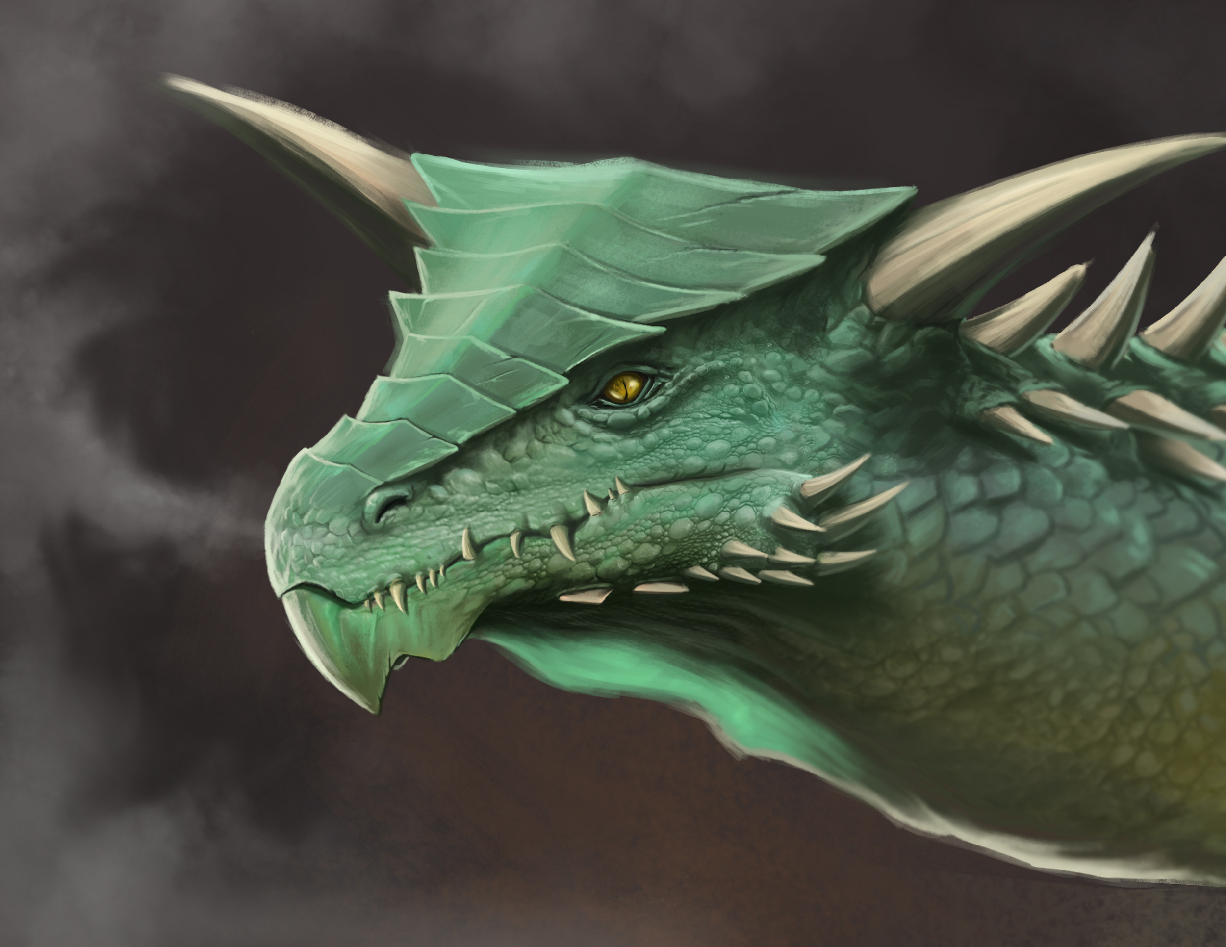 Allez je me lance ! Je n'ai pas d'itérations car j'ai généralement une idée bien nette avant de me lancer sur un dessin, mais j'ai un peu de process : L'idée était de mettre en scène une bestiole inventée à partir d'une tache sur un mur (Le sketch en N/B sur la dernière image). Je l'imaginais comme un genre de "buffle canidé" vivant dans des marais. Je me suis donc inspirée d'images de marécages trouvés sur Pinterest (Image 5) pour me donner une idée d'ambiance, mélangé à des souvenirs de paysages vu dans le Jeux vidéo Path of Titans (J'ai pas retrouvé d'image pour illustrer, sorry). J'ai d'abord tracé l'environnement, puis la bestiole, et en 3e étape j'utilise toujours un filtre Multiply et Add pour créer une ambiance lumineuse (L'ambiance bleutée/verdâtre). Après je commence le taff d'aplats et de détail par le fonds en revenant progressivement vers mon sujet. Voilà !1 point