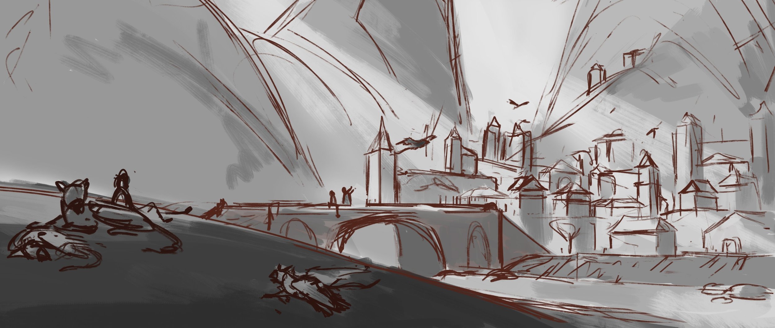 Bonjour tout le monde ! 🙂 Vous venez de terminer votre personnage ou votre jolie cabine de forêt. Les proportions marchent super bien, votre focale bien amenée, et les couleurs intéressantes. Maintenant, il s'agirait d'habiller ce qu'il y a autour pour mettre en valeur votre sujet, mais là... C'est le drame : comment faire un décor qui soit intéressant et cohérent, sans dévier la focale ? Quels éléments ? Quelles couleurs ? Un extérieur, un intérieur ? Si ces problèmes résonnent en vous, alors vous êtes au bon endroit pour les travailler, car ce mois-ci, c'est étude de décors ! 🙂 Étude de décors On va arrêter de fuir nos problèmes, et ne plus laisser nos persos flotter dans un paysage vide ! 💪 Ça consiste en quoi ? Concrètement, nous allons étudier des environnements ou des portions de paysage dans lesquels notre point de focale pourrait être mis en valeur. Pour commencer, vous pouvez reprendre un digital painting récent dans lequel vous avez abandonné l'idée de faire un décor, ou même le personnage que vous avez proposé pour le défi du mois de janvier. A la fin du mois, le but pourrait être de réussir à créer entièrement le décor que vous aviez abandonné précédemment ! Ça entraîne quoi ? Le dessin d'observation, mais également votre imagination puisque votre élément principal devra sembler naturel dans ce décor. Vous travaillerez également les textures, ainsi que les valeurs et les couleurs si vous décidiez de pousser l'exercice jusque là ! Comment faire ? Commencez par imaginer le contexte dans lequel votre élément central évoluerait bien. Est-ce un paysage naturel ? Un paysage urbain ? Un environnement d'intérieur ? Décortiquez ensuite ce paysage en plus petits éléments. Pour un paysage naturel, il pourrait s'agir de végétation ou de rochers. En ville, peut-être des bâtiments ou des voitures. Et pour une zone intérieure, vous imaginez peut-être une chambre avec un lit ou des plantes d'intérieur. Trouvez des références que vous trouvez intéressantes pour cet élément, et faites-en des itérations, c'est-à-dire que vous en faites plusieurs versions en variant leur forme. Essayez de bien capturer les textures et les couleurs pour que votre élément reste reconnaissable. Cela peut rester à l'étape de croquis, ou aller jusqu'aux valeurs et aux couleurs - comme vous préférez. Quand vous avez suffisamment d'éléments, essayer de les mettre ensemble de manière harmonieuse et qui ne détourne pas le regard de votre élément principal. Pour finir, insérer votre point de focale dans cet environnement en prenant garde à ce qu'il reste l'élément principal à ce qu'il attire immédiatement le regard. Des variantes de cet exercice sont possibles : en effet, vous pouvez simplement décider de vouloir faire simplement des études de décors, sans forcément chercher à habiller un personnage ou un élément pré-existant. Vous pouvez décider de garde une base réaliste ou stylisée, suivant la manière dont vous avez préalablement travaillé votre élément principal. Et, comme toujours, vous pouvez travailler en digital ou en traditionnel ! Quoi poster ? En réponse ci-dessous, vous pouvez nous proposer les réflexions autour de votre décor, ainsi que vos études et itérations des différents éléments de votre décor. Et à la fin, bien sûr, partagez-nous votre décor complet avec son élément central ! 🙂 Quelques exemples A vos stylos et vos stylets ! 🙂1 point