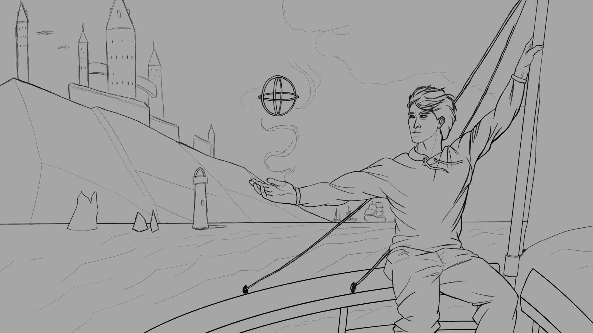 Salut ! Bravo d'avoir eu l'oeil assez critique pour remettre ta premiere proposition en question, c'est pas toujours évident de se l'avouer 😄 En tout cas je trouve cette nouvelle version bien plus intéressante ! Je ne suis pas entièrement rentré dans les détails de la compo sur ta premiere version, vu que c'est un chapitre pour plus tard 😉 Sur ta 2eme version c'est bien plus équilibré, on a une image bien lisible et facilement compréhensible. Aucun soucis pour le trait, il s'agit ici d'une étape de croquis, elle peut etre encore un peu "sale". Mais la tienne est déja bien propre 🙂 J'ai tenté un petit PO histoire de donner un peu plus d'intéret et d'échelle a ton arriere plan : C'est juste une proposition, ca veut pas dire que tu dois changer ta version Bon courage pour la suite 🙂1 point