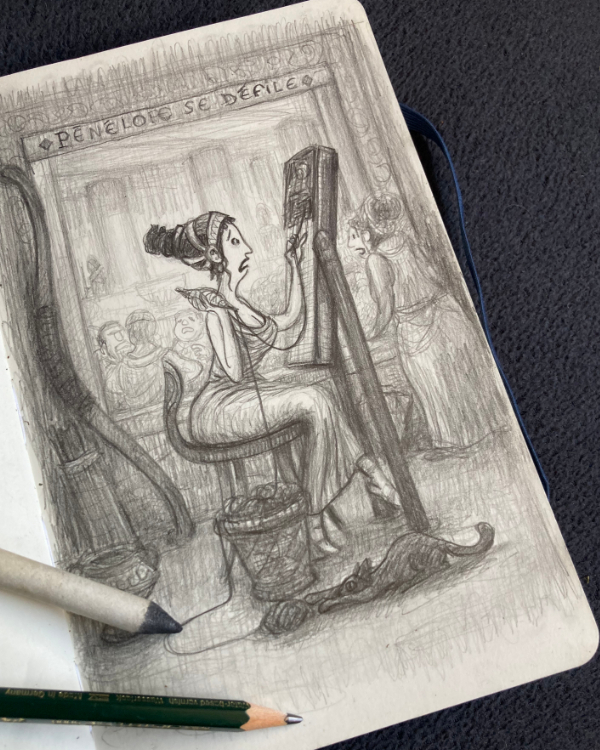 Salut tout le monde. Pour être honnête, ce tissage ne m'a pas beaucoup inspiré. Résultat, je me suis contenter de quelques bandelettes tissées justement. Ça m'a permis de travailler en valeur. Le problème quand on poste tardivement, c'est qu'on a plein de super propositions à commenter. allez je me lance : @ApostroKe Toujours aussi flippant @daffsympa la compo @poltu le regard de cette tisserande est intimidant @fred21 simple, efficace @stefouj'aime vraiment ton univers @Fl0ck0n oui pas foufou le thème @Orel top les mains @juliaBlanchard les drapés et la lumières sont top @Deny l'arc, les flèches... pas de doute, Pénélope attend Ulysse. @1 neasbien la pose du perso @pamin églantine ? @June j'aime beaucoup les mains squelettiques @oknim7 cheveux et tatouage au top ! @arky_ la main est vraiment bien et les fils orange apporte la touche couleur qu’il faut ! @holdwigtrop choupi ! @Haeresis Les parques sont réussie. La main et la jambe droite de celle du milieu me semblent un peu grande @Shelter j'aime beaucoup l'ambiance @yurinomai Toujours fan @Ninipumpkin le choix de la couleur est top @etiennazela pose est super dynamique ! @Lodorca me fait penser à la Roue du Temps @Gopperus sympa cette araignée pelote de laine @PandorArtC'est mon cerveau en voyant le thème du jour @iselderblaicksuper compo de cette Shiva tisserande10 points