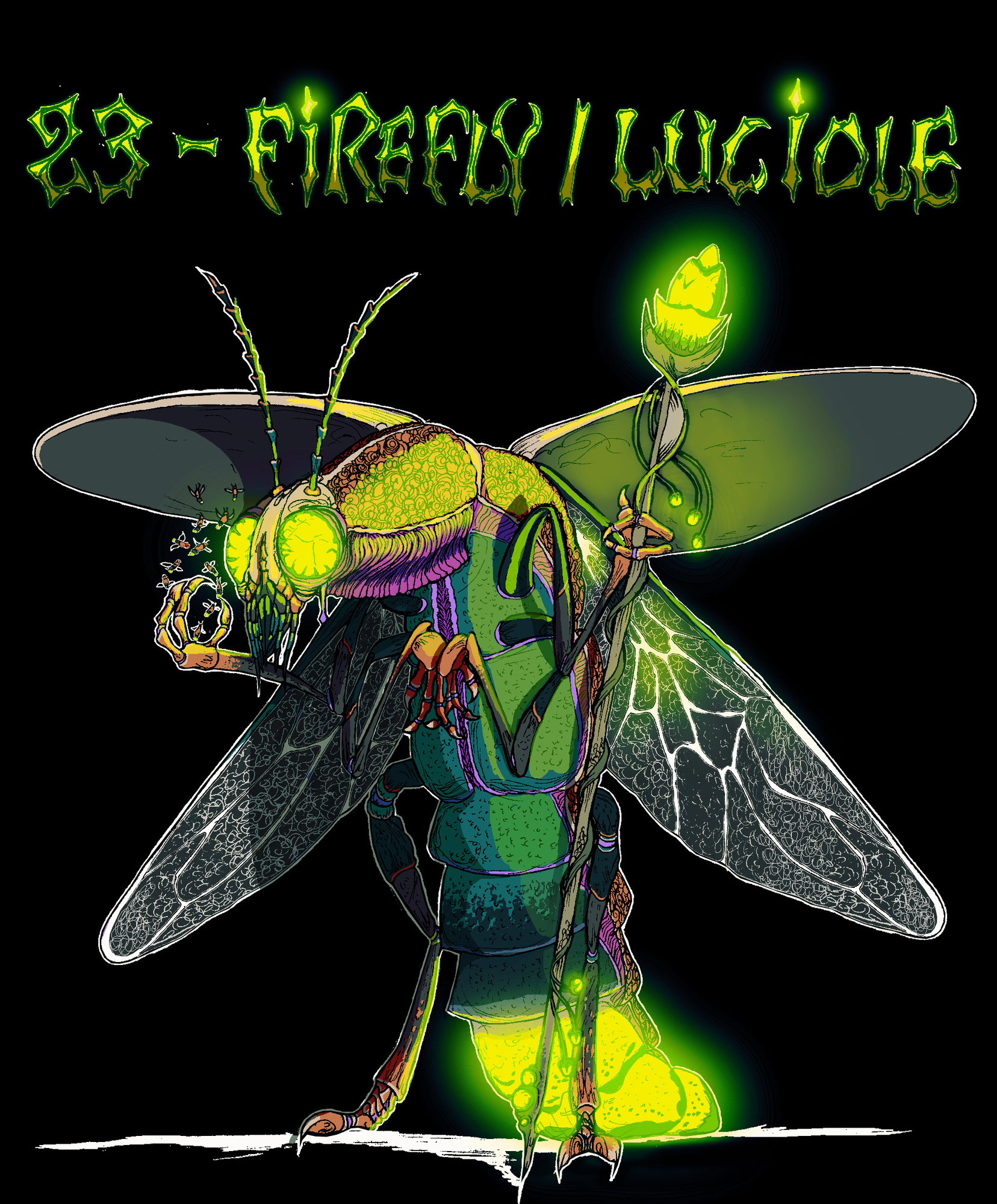 Bonjour tout le monde ! @Gopperus Très mignonne et choupi ta petit luciole ❤️ @stefou Toujours aussi magnifique tes illustrations 😍 La lumière, le personnage et ses petits compagnons de lumière, tout va ! @Image.In.R Je confirme on ne voit pas ton image, l'import n'a pas fonctionné 😅 @bussi29 Belle créature bien accompagnée, c'est très chouette ! Pour ma part voici ma participation. Aaah on revient sur l'illustration de bestioles, ce que je préfère le plus 😁. Créature un peu plus grande qu'un humain, gardienne d'un monde étrange qui serait éternellement tapi dans l'ombre sans elles.30 points