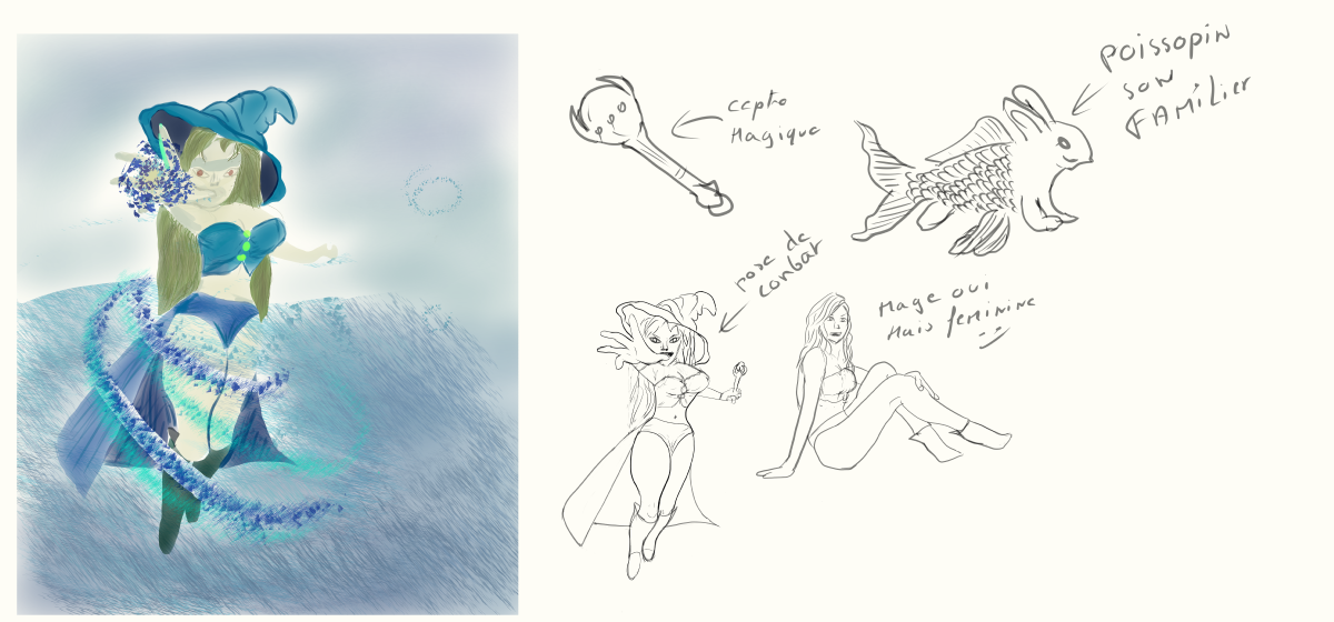 Bonjour à tous je n'ai malheureusement pas pu suivre la partie sur l'anatomie et je regrette amèrement surtout au vu de ce qui est demandé cette semaine 🙂 , mais je voudrais toute de même tenter une participation. pour ce faire je voudrais soumettre à vos avis ce premier croquis de pose pour ma magicienne.2 points