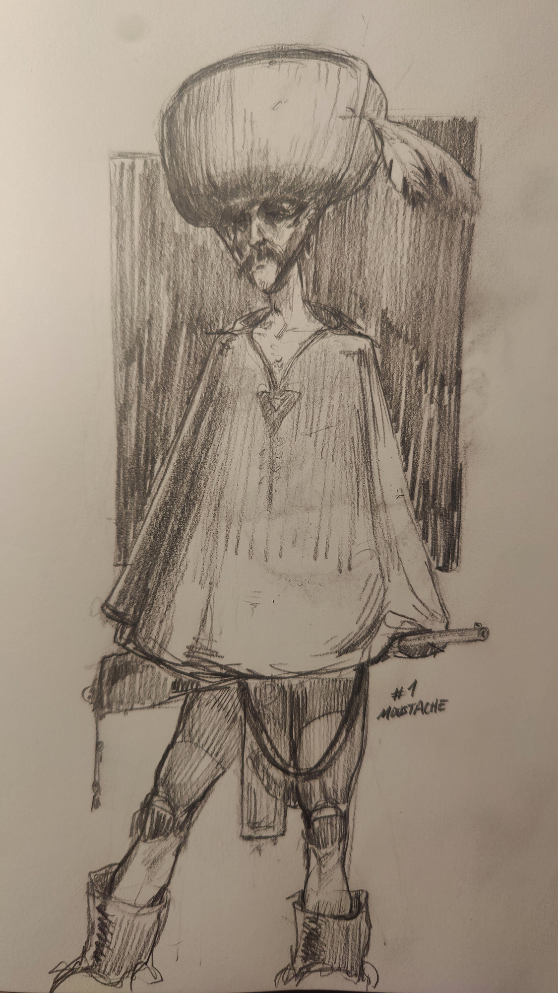 Bonjour tout le monde. Et on est reparti pour une nouvelle année ! On va bien s'amuser. @bussi29 Très belle retranscription du portrait de ton arrière grand-père, Bravo ! @fred21 T'inquiètes de mon côté j'ai compris la blague. Quand tu sais que l'un a interprété l'autre, c'est presque une guerre de la moustache. @Ninipumpkin Très mignonne la mascotte, tu pourrais l'envoyer au kebab en question 😄 De mon côté, voici ma participation. Je voulais commencer par un baron mélangeant le baron de Münchausen, Bobby Liebling du groupe Pentagram, le Chapelier Fou d'Alice Madness Return et les mains de la sorcière de Caroline. Vous prendrez bien un tasse de thé ?38 points