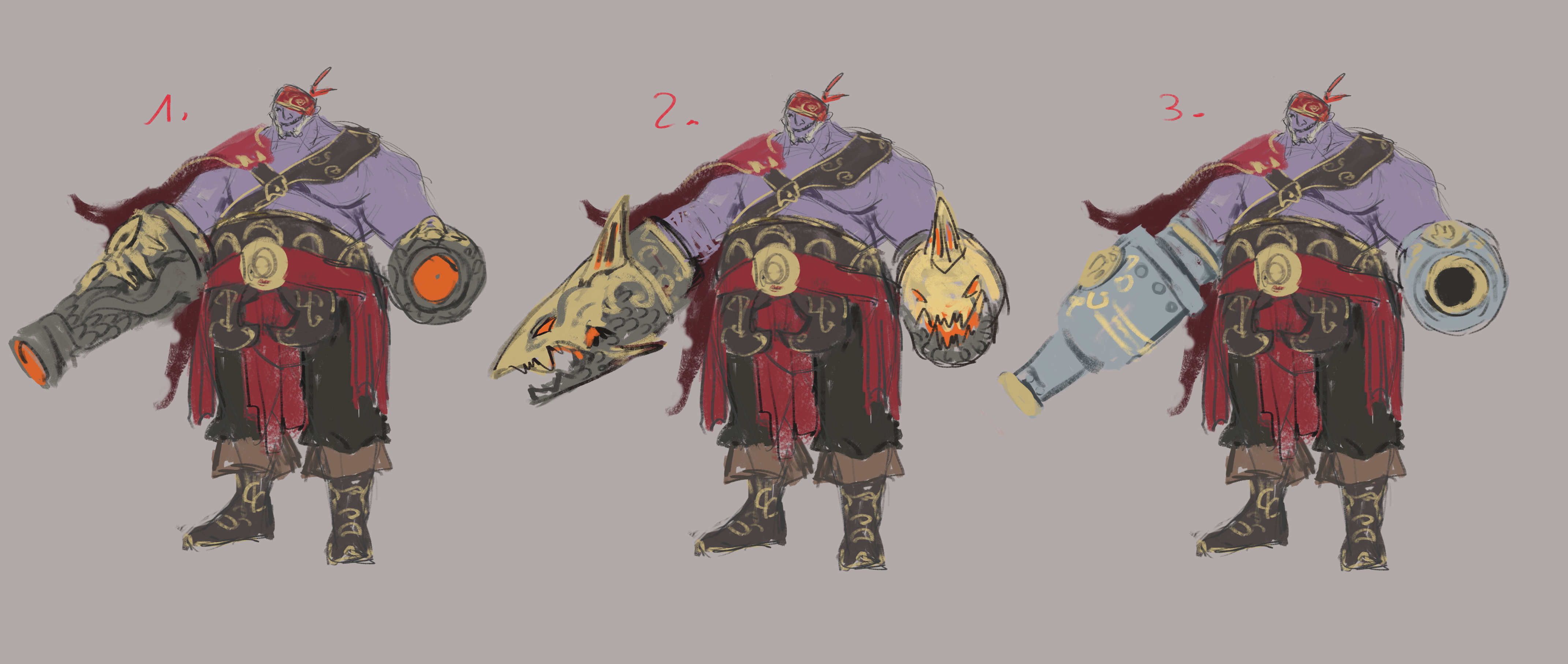 perso la 1 ou la 2 avec probablement une pref pour la 1. Attention à ta torche/brasero à gauche qui emettra un peu de lumière rougeatre/jaune0 (en restant subtile mais permettra aussi de faire des highlight sur ton perso et la tete d'ours. D'ailleurs ca peut etre un cool effet de chaud/froid sur ta scene (si tu passes lumière principale en froide. Très abusé par Blizzard comme style mais trèès efficace.1 point