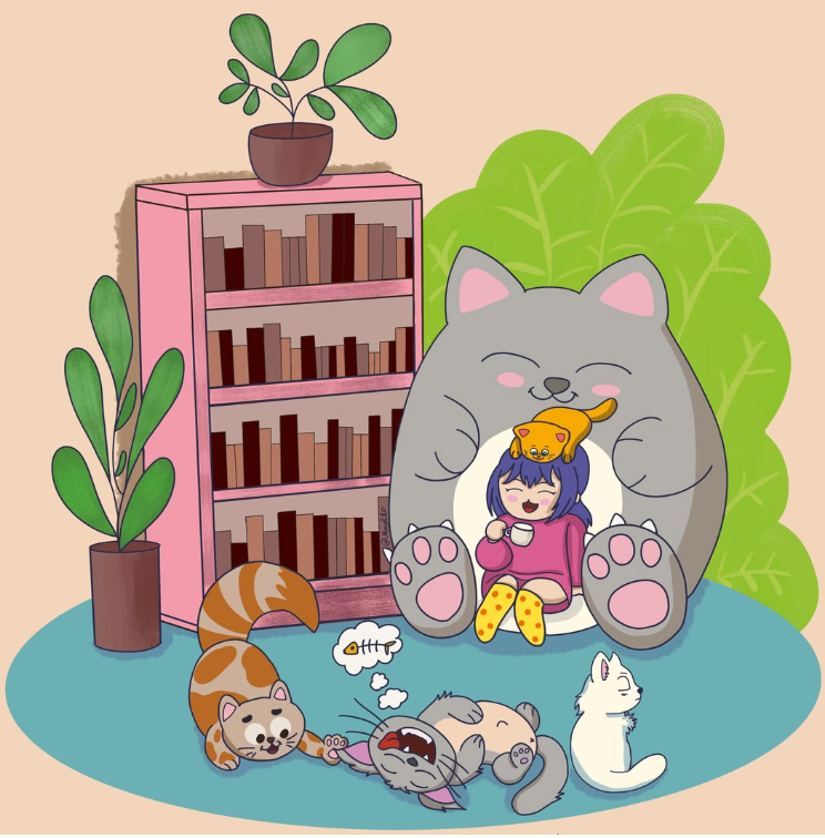 Bonjour, je poste le premier DP de cette partie. C'est une scène d'intérieur et c'est clairement pas ma zone de confort. Je l'ai faite récemment pour concours CSP et j'espère à la fin de cette partie savoir créer des intérieurs cosy comme j'ai dans ma tête. Et comme dans cette partie je vais apprendre la perspective, je pense qu'à la fin ce dessin sera meilleur.1 point